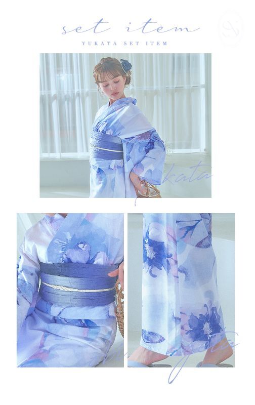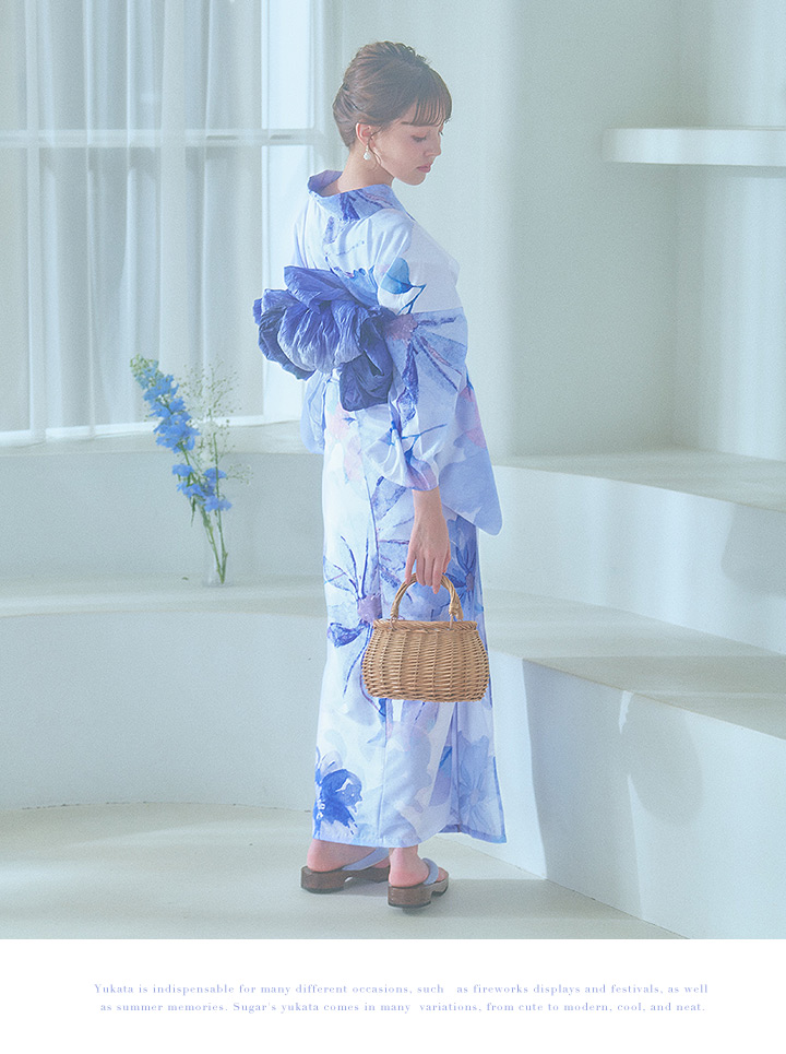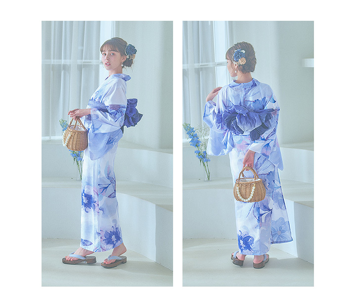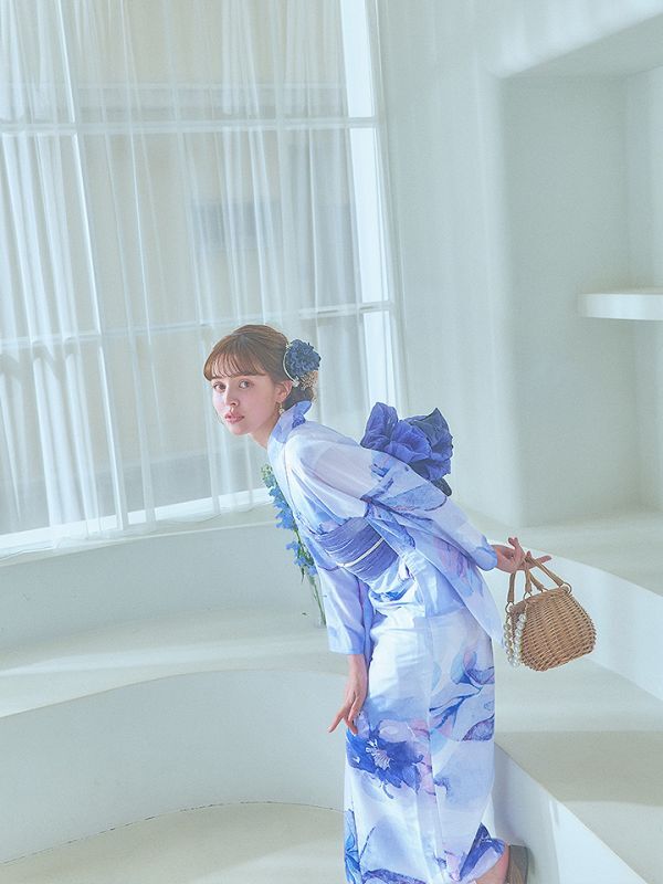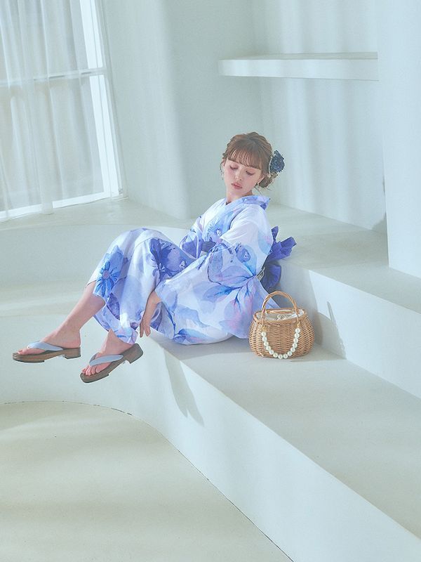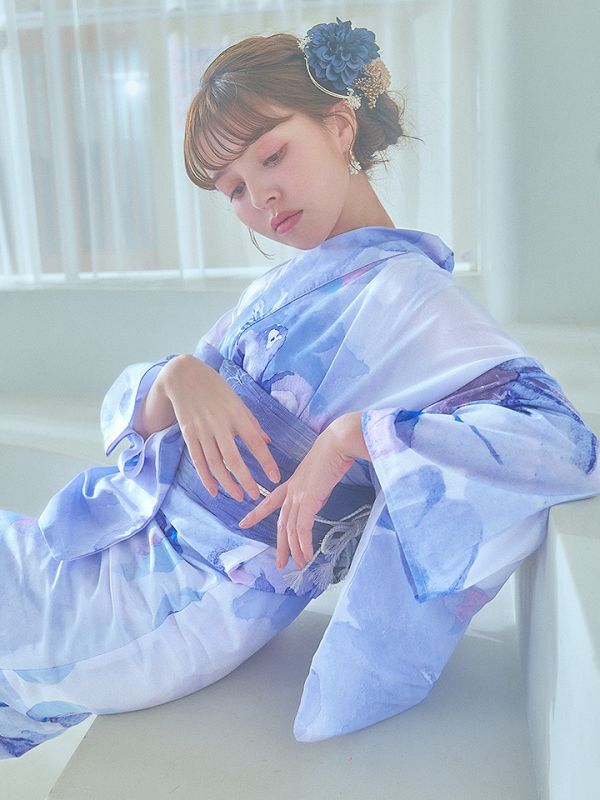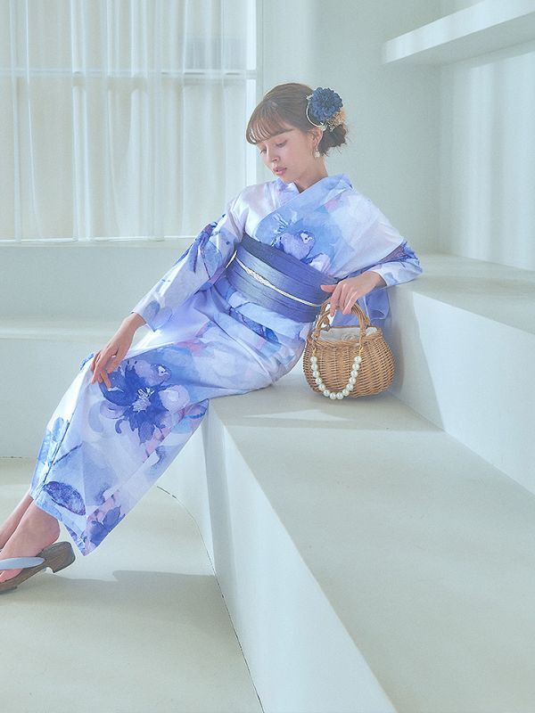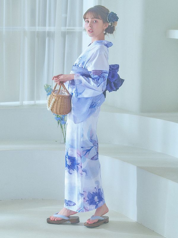【即日発送】水彩フラワーブルー浴衣 【浴衣3点セット 浴衣/帯/下駄】 [YMT] [Y-8066-sb-dzc-BL-F-24NN]