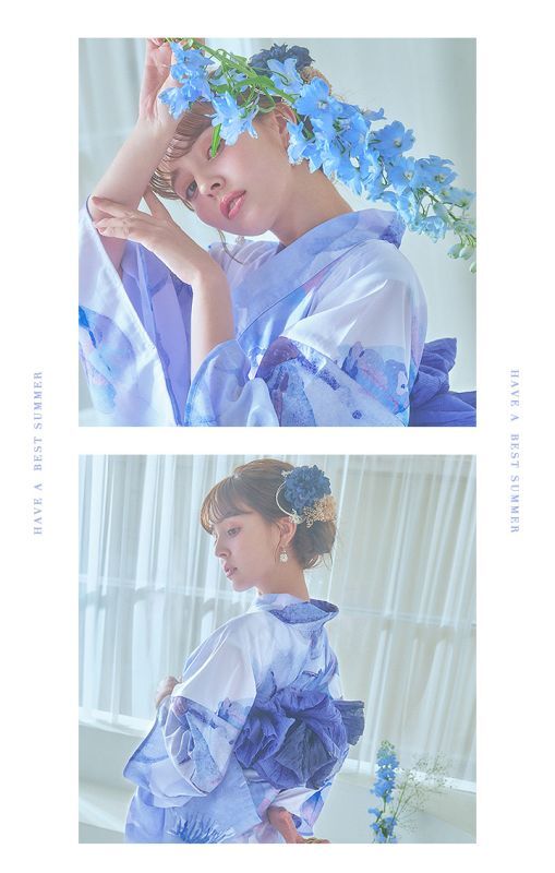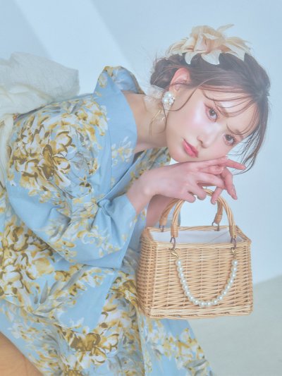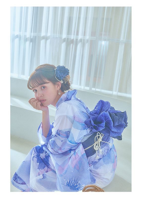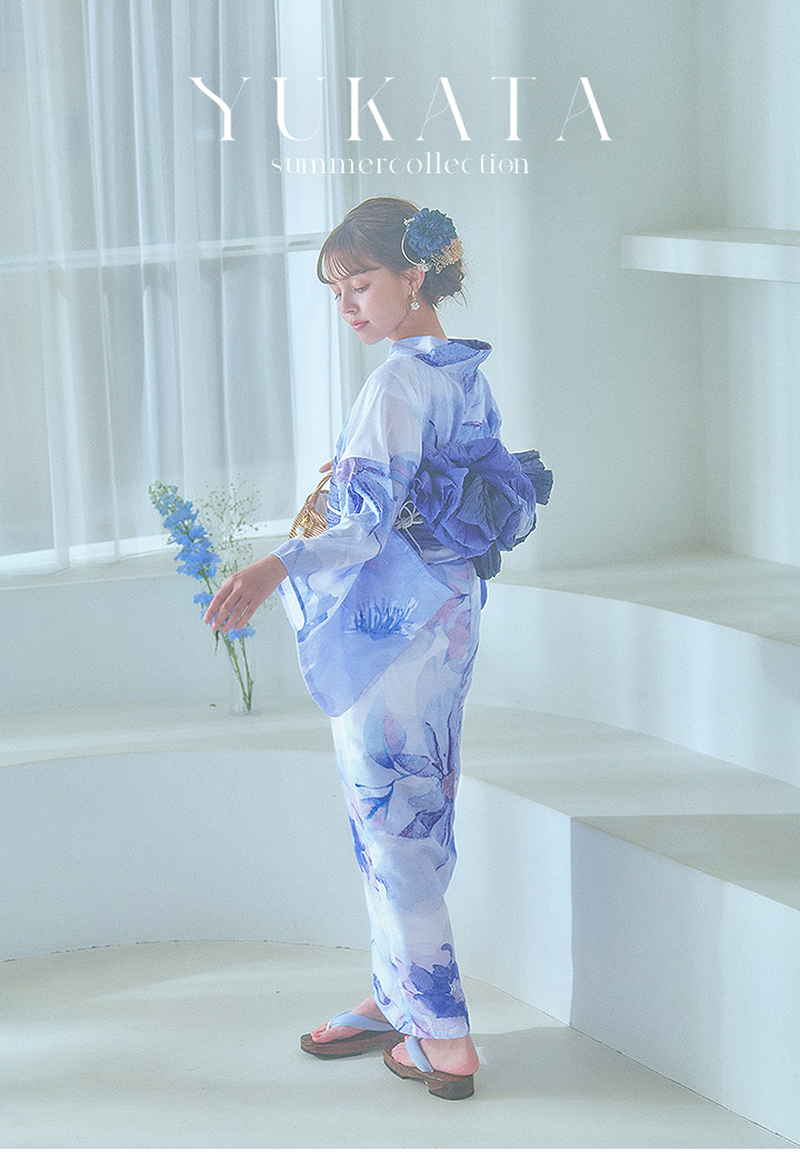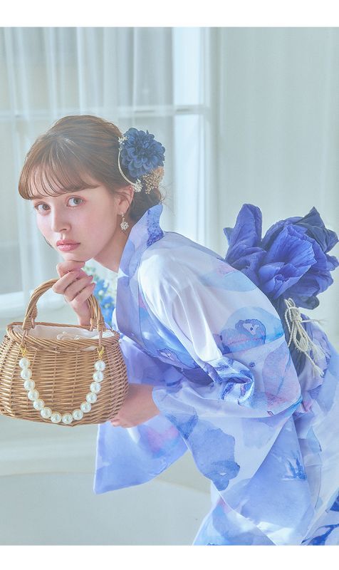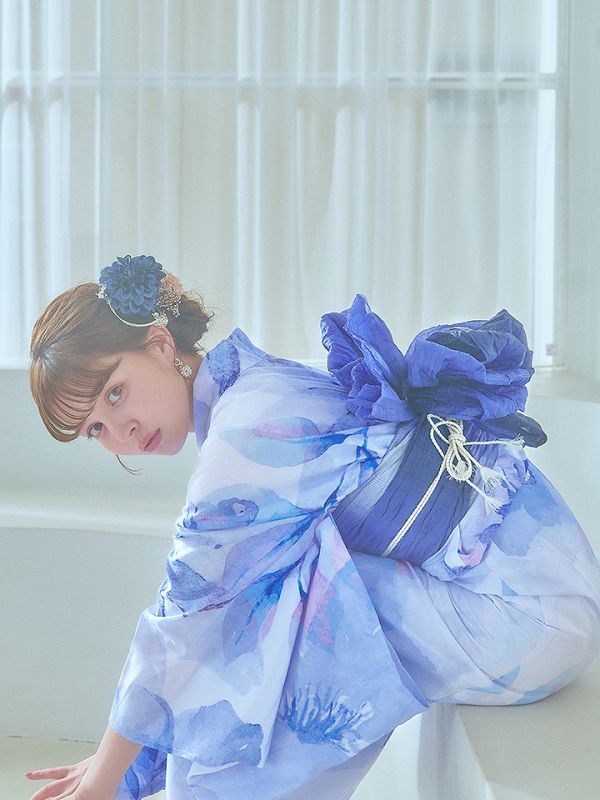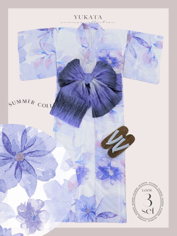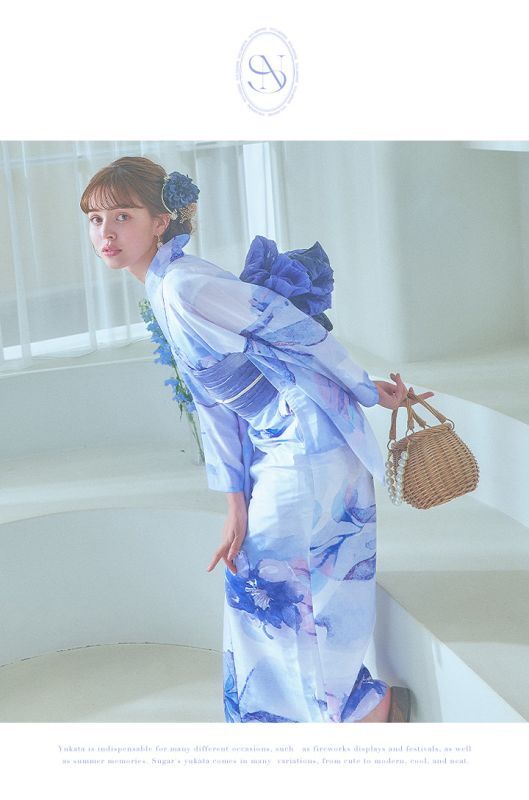 【即日発送】水彩フラワーブルー浴衣 【浴衣3点セット 浴衣/帯/下駄】 [YMT] [Y-8066-sb-dzc-BL-F-24NN]