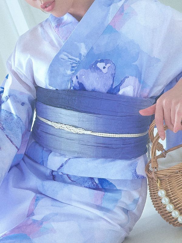 【即日発送】水彩フラワーブルー浴衣 【浴衣3点セット 浴衣/帯/下駄】 [YMT]