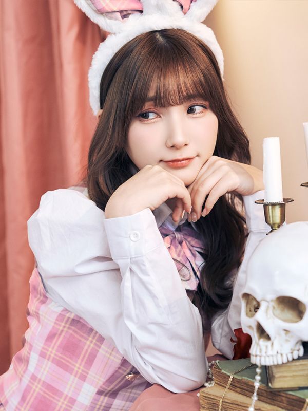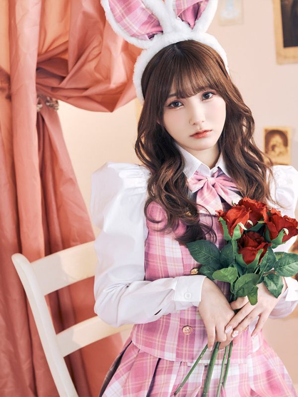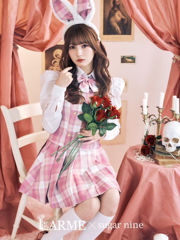 バニー うさぎ ラビット 兎 チェック ピンク ぴんく リボン セットアップ ツーピース 2ピース 甘い あざと コンカフェ スイート あまい 長袖 ワンピース