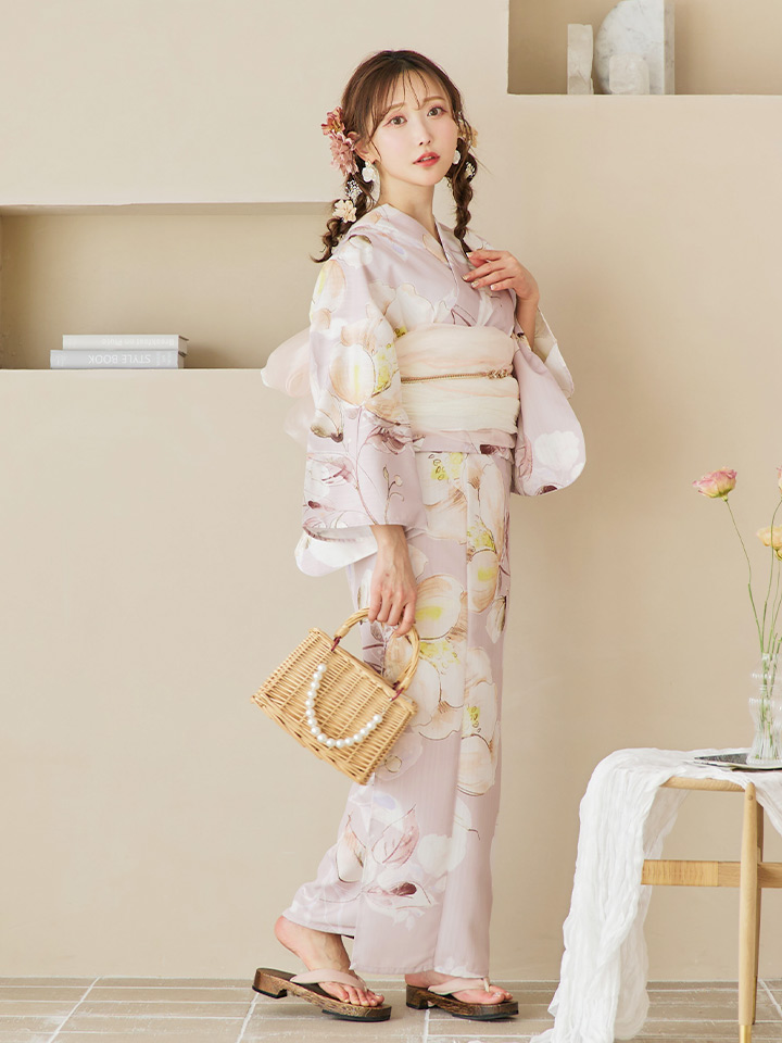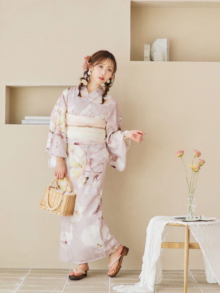 【即日発送!】大人くすみピンクx牡丹浴衣 【浴衣3点セット 浴衣/帯/下駄】 [YMT] [Y-8042-nz-dzk-P-F-24YI]