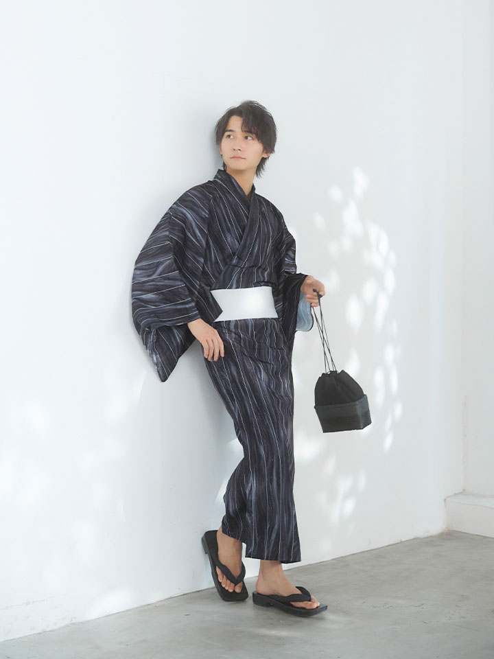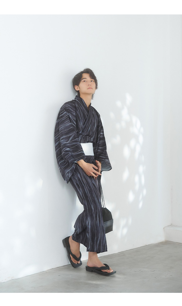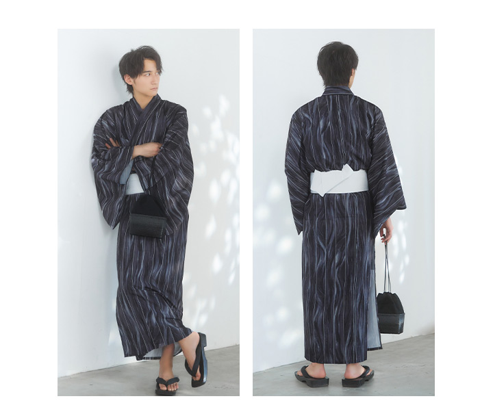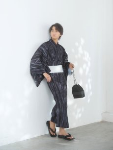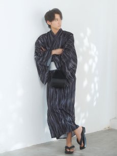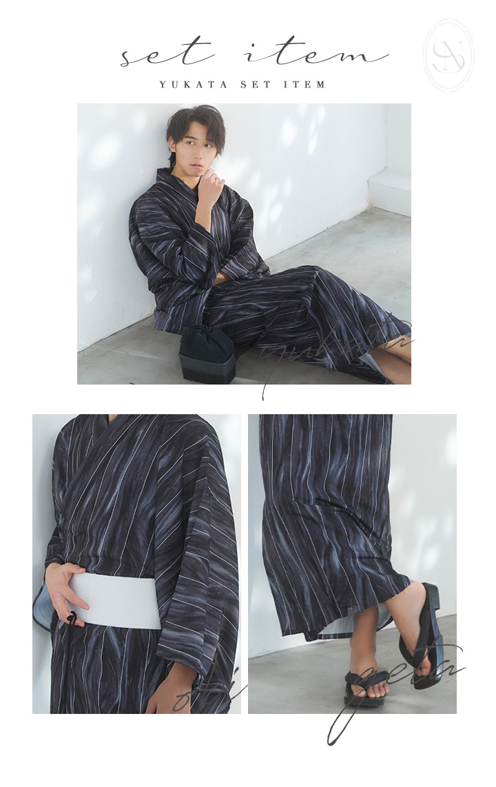 【即日発送!】【メンズ浴衣】モザイクアート×ストライプ浴衣【浴衣・帯・下駄セット】 [YMT]