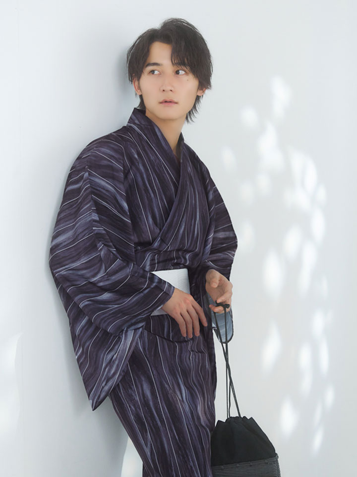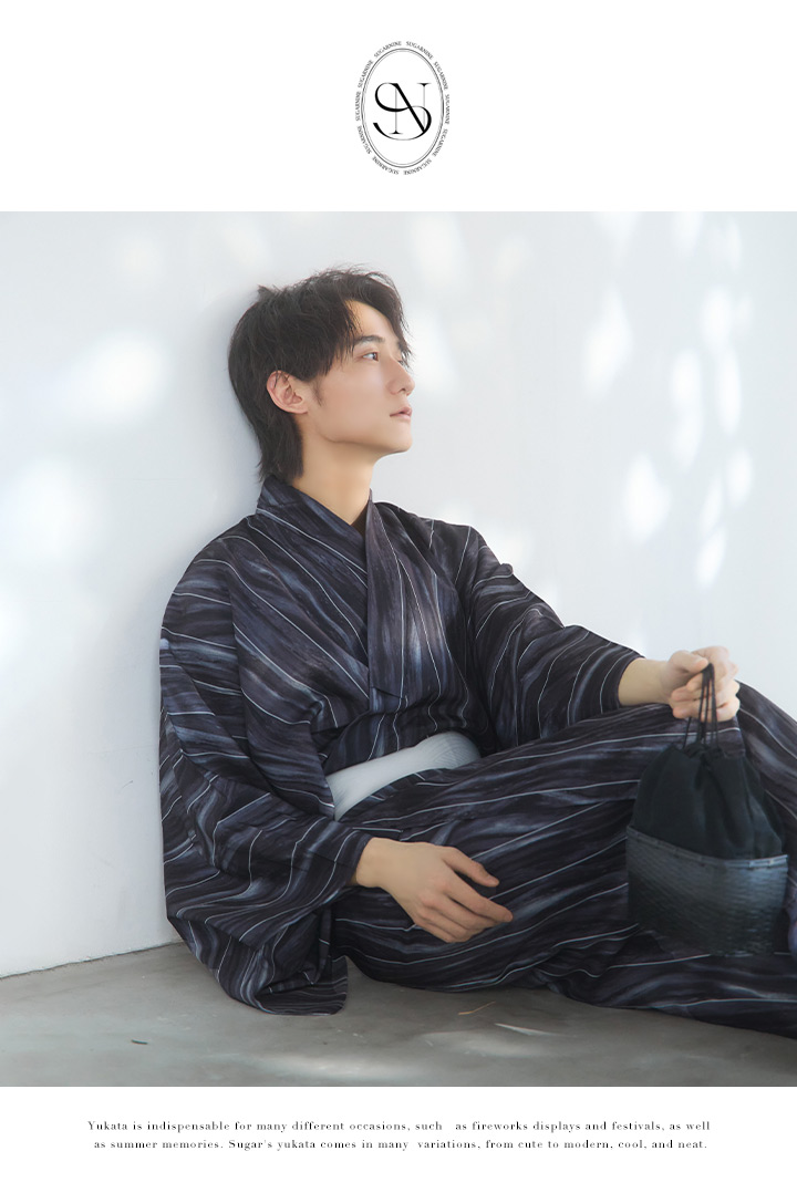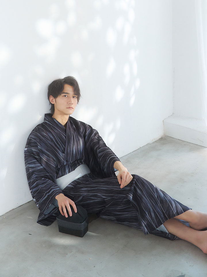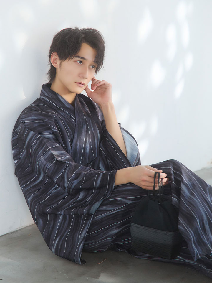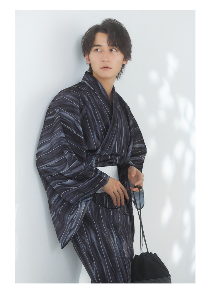 【即日発送!】【メンズ浴衣】モザイクアート×ストライプ浴衣【浴衣・帯・下駄セット】 [YMT]