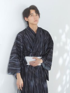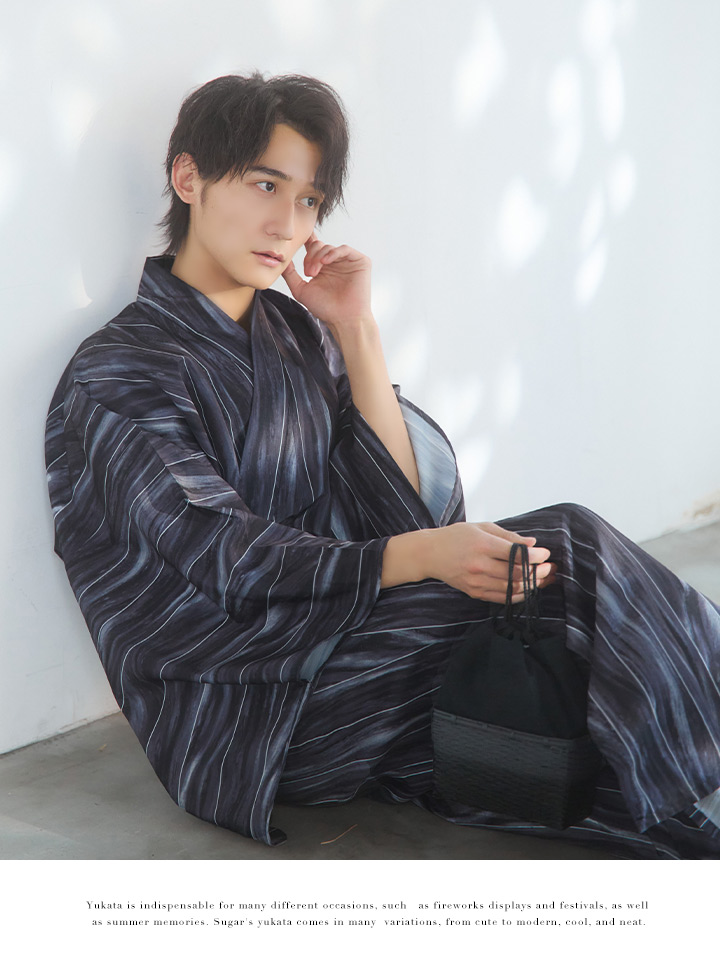 【即日発送!】【メンズ浴衣】モザイクアート×ストライプ浴衣【浴衣・帯・下駄セット】 [YMT] [MSY-9041-ok-NV-24ON]