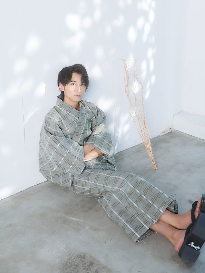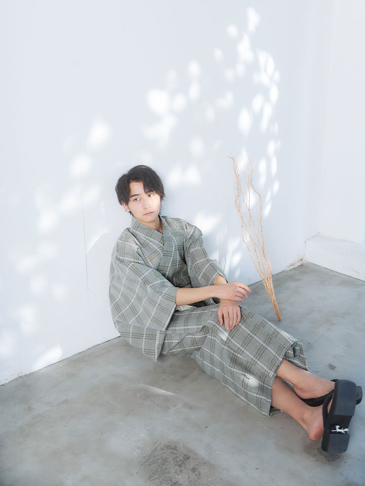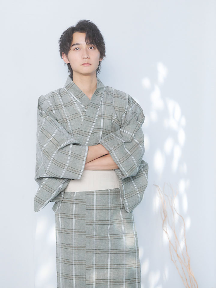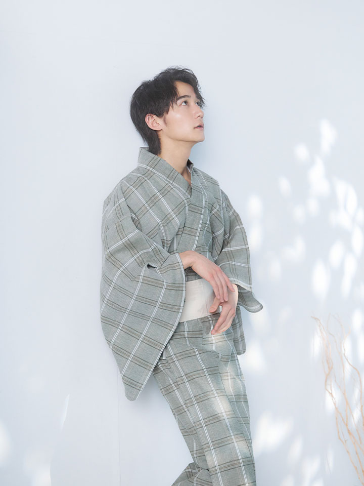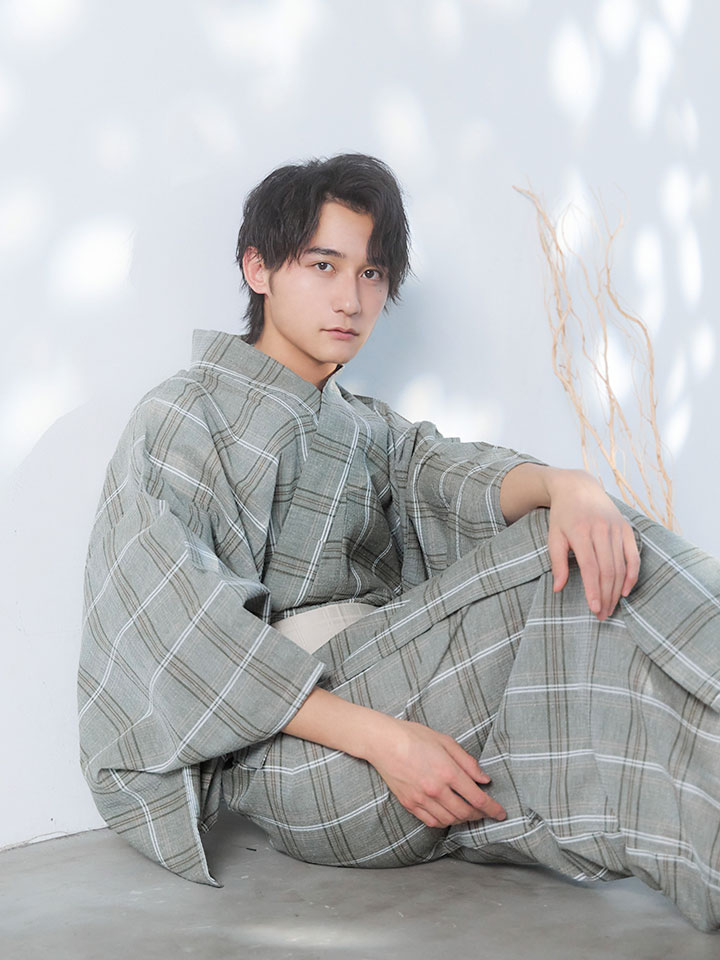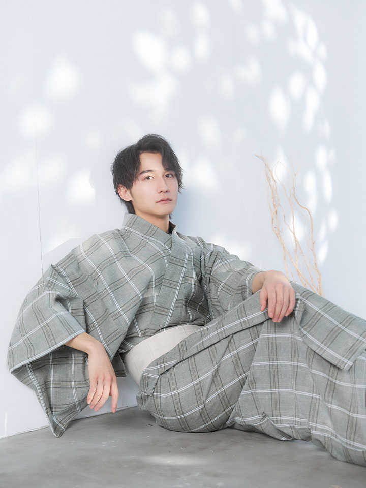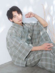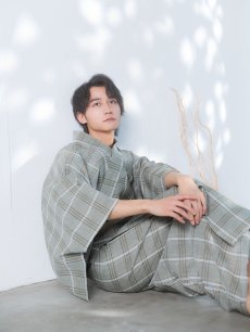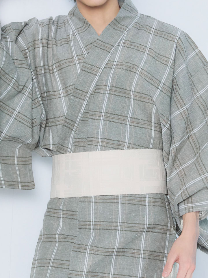 モダンなチェック柄がオシャレに見せる大人レトロな夏浴衣。