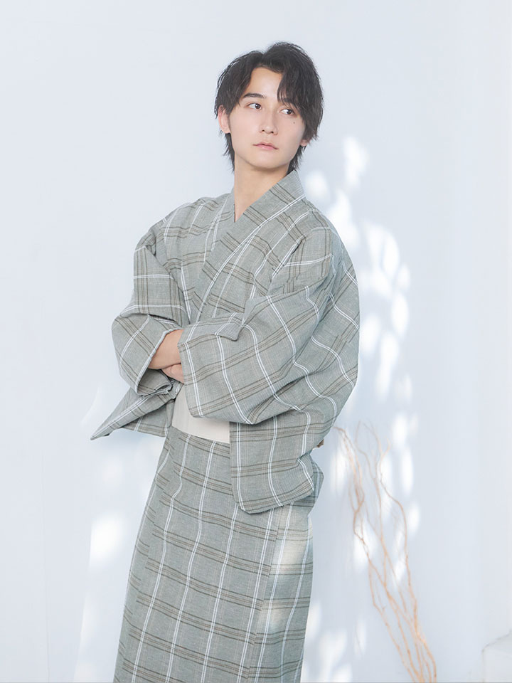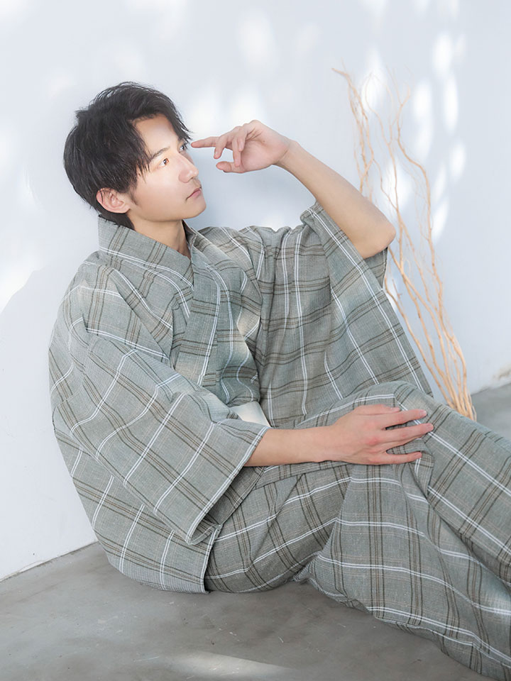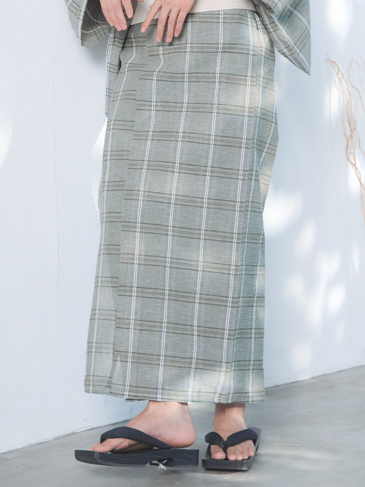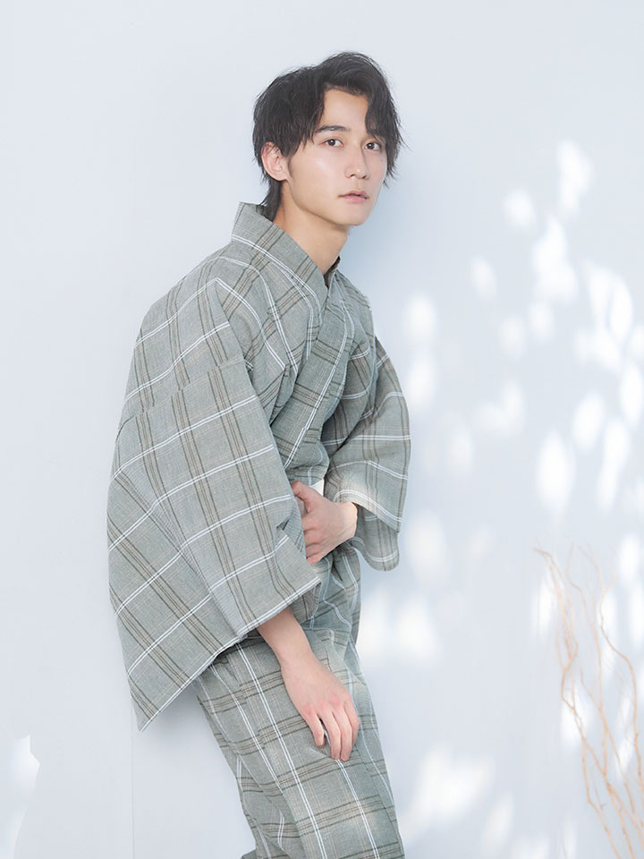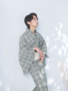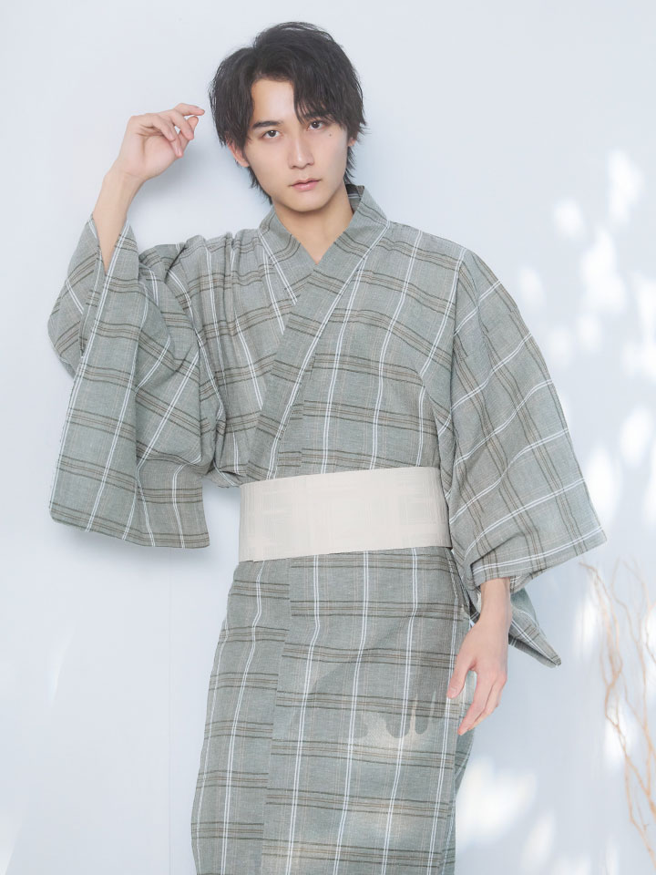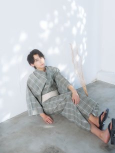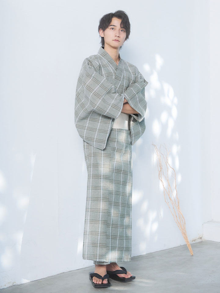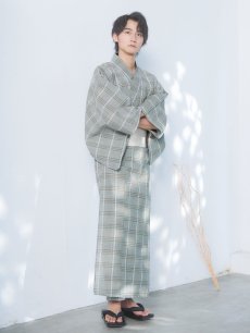 【即日発送】【メンズ浴衣】グリーンベージュモダン浴衣【浴衣・帯・下駄セット】 [YMT] [MSY-9042-ok-GY-24ON]