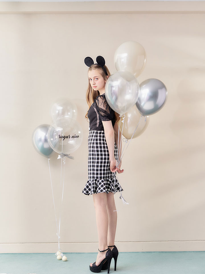 モノトーンでスタイリングした大人可愛いワンピースコスプレ。