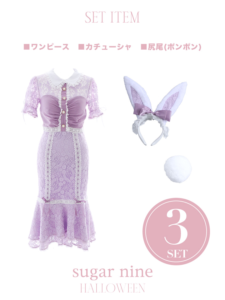 【SALE!!】バニーレースワンピースコスプレ/マーメイドスカート【sugar nineハロウィン3点セット】【S-Lサイズ/2カラー】(SU220153)[HC03] [SU220153-22py-1-S9]