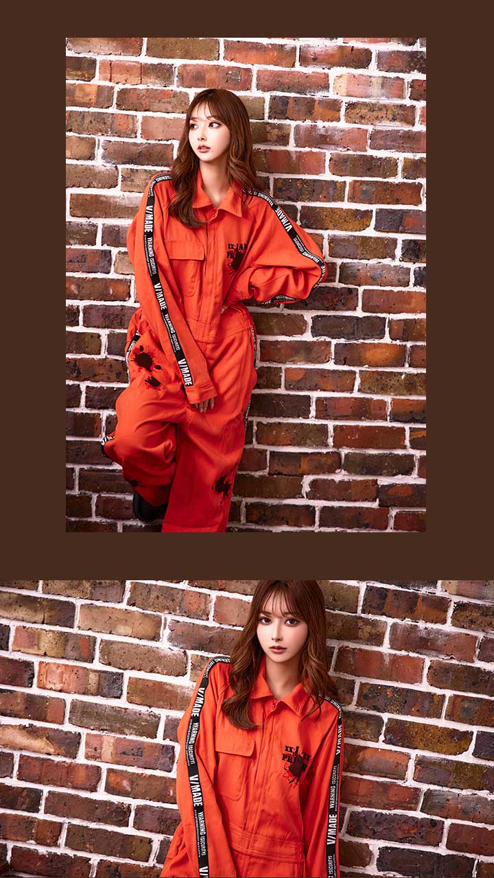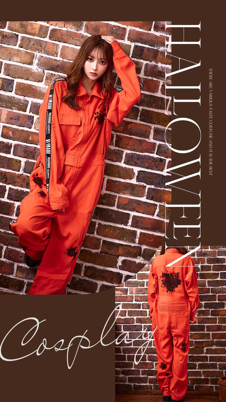 オレンジカラーが可愛いオールインワンタイプのプリズナーガールコスプレセット♪他では買えないsugar&JEWELSだけのオリジナルコスプレ!
