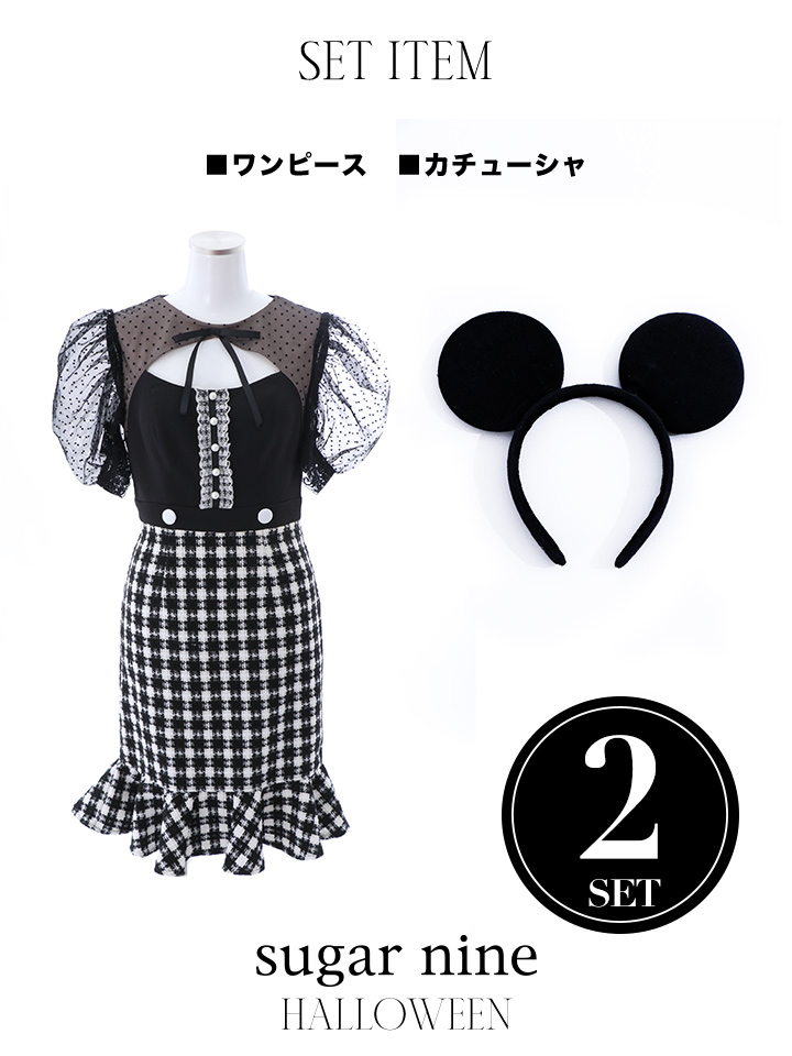 【SALE!!】【即日発送】ブラックマウスコスプレ/ワンピースコスプレ【sugar nineハロウィン2点セット】【S-Lサイズ/1カラー】[HC03]