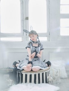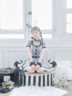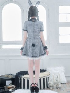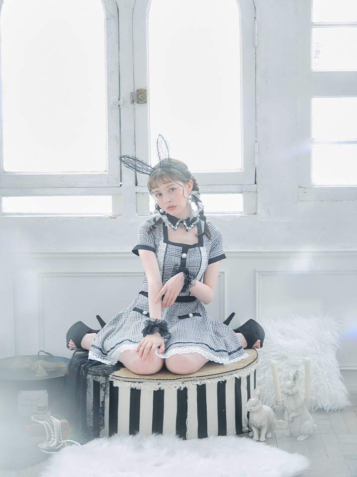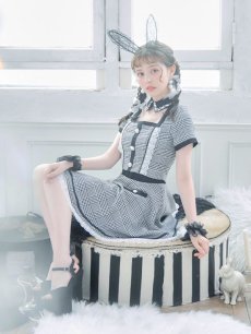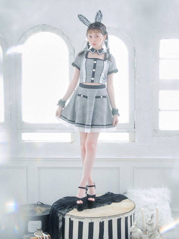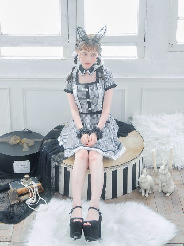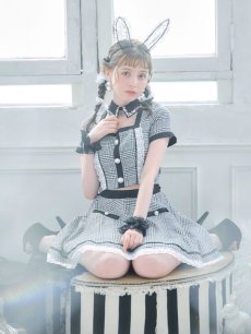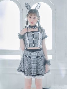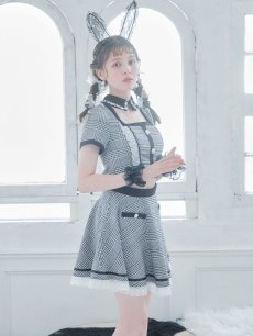 バニー うさぎ ラビット 兎 チェック ブラック 黒 ギンガムチェック セットアップ ツーピース 2ピース 甘い あざと コンカフェ スイート あまい 半袖 ワンピース