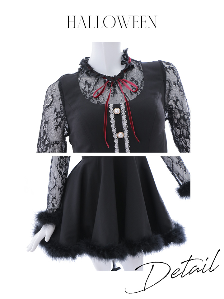 【SALE!!】【即日発送】【ハロウィン】 レースブラックキャット / 黒猫【コスプレ2点セット】【S-XLサイズ/1カラー】[HC03]