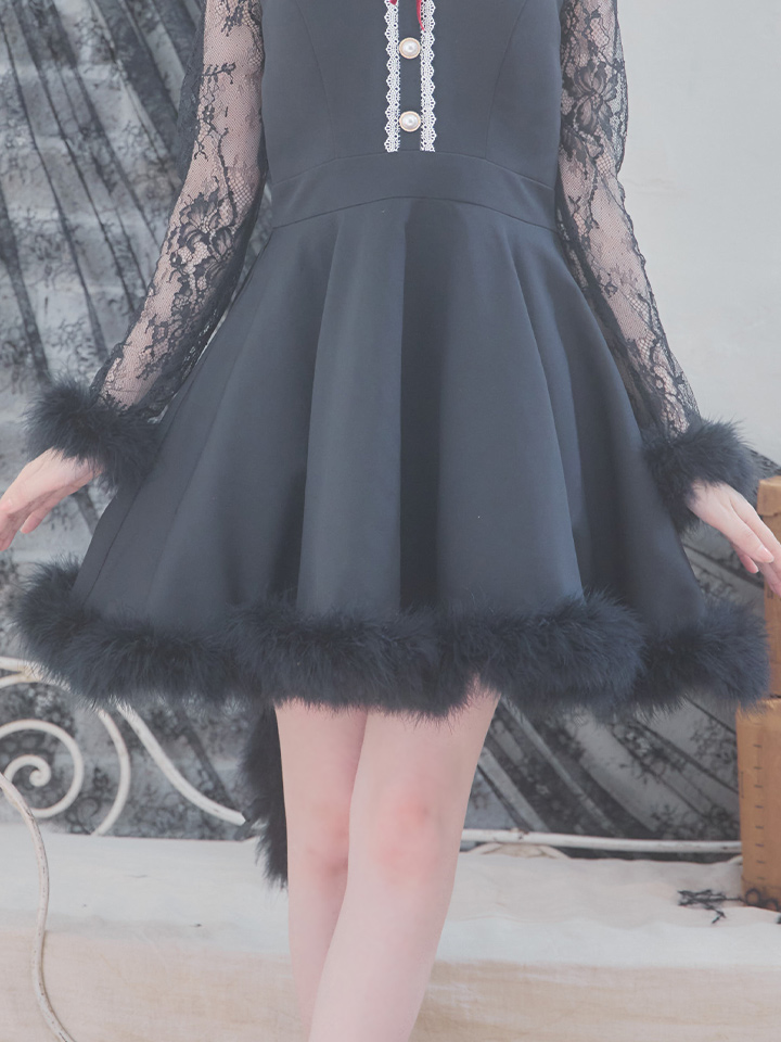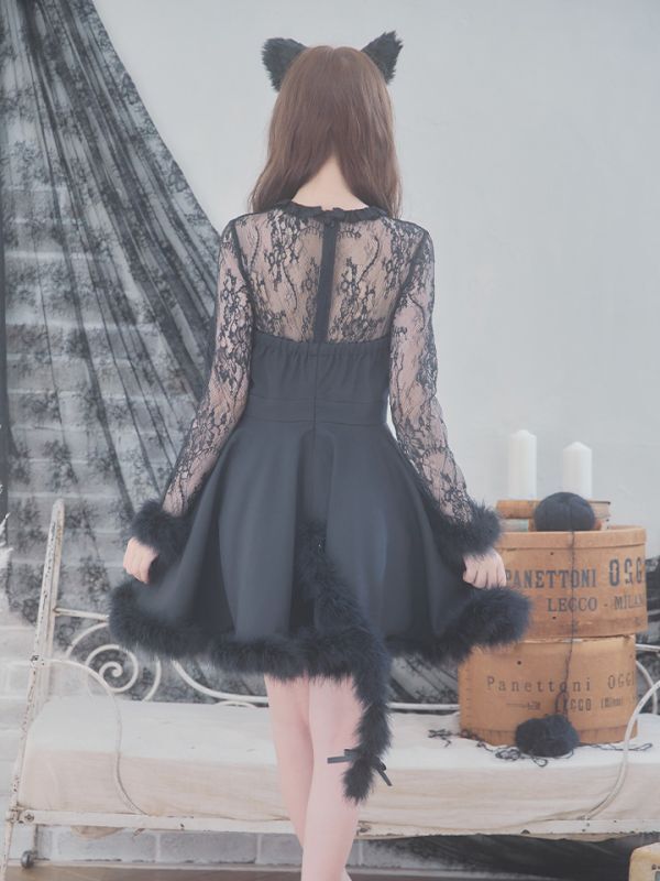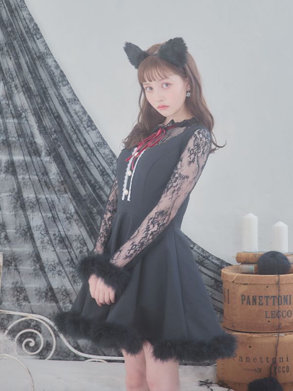 ねこ キャット ネコ 猫 ワンピース フレアスカート 長袖 ロングスリーブ レーススリーブ アニマル 動物 コスプレ 一般 露出が少ない