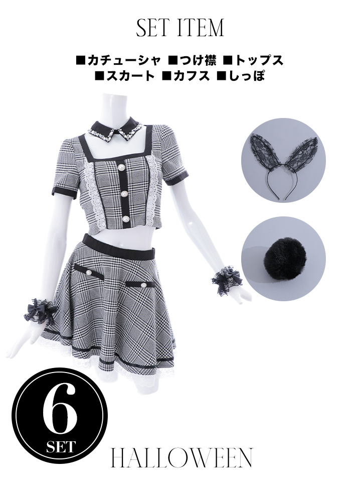 【SALE!!】【即日発送】【ハロウィン】【LARME/ラルム掲載】グレンチェックセットアップバニー 【コスプレ6点セット】【XS-Mサイズ/1カラー】[HC03] [HW-097-SB-dzc-23lar-1-S9]