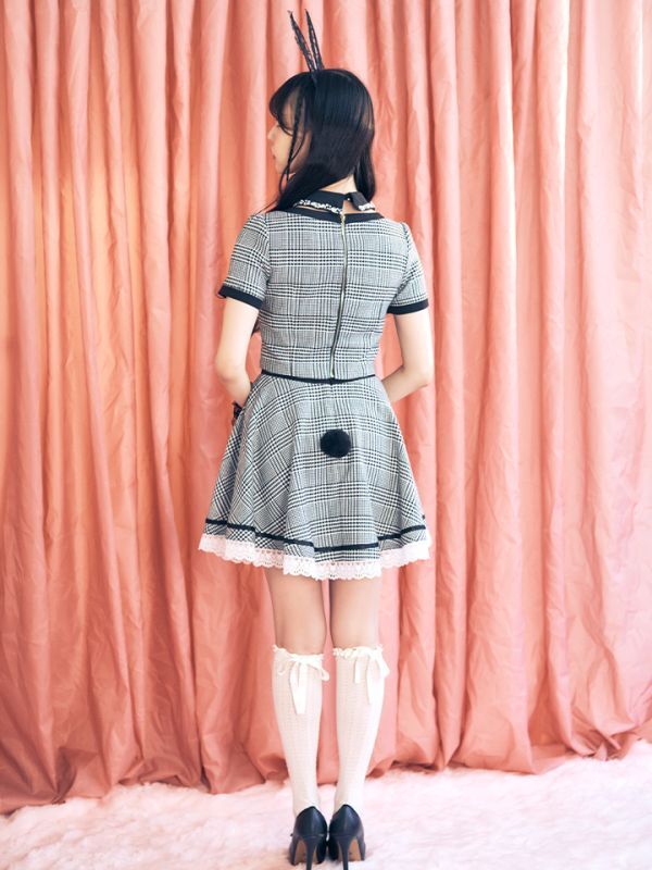 バニー うさぎ ラビット 兎 チェック ブラック 黒 ギンガムチェック セットアップ ツーピース 2ピース 甘い あざと コンカフェ スイート あまい 半袖 ワンピース