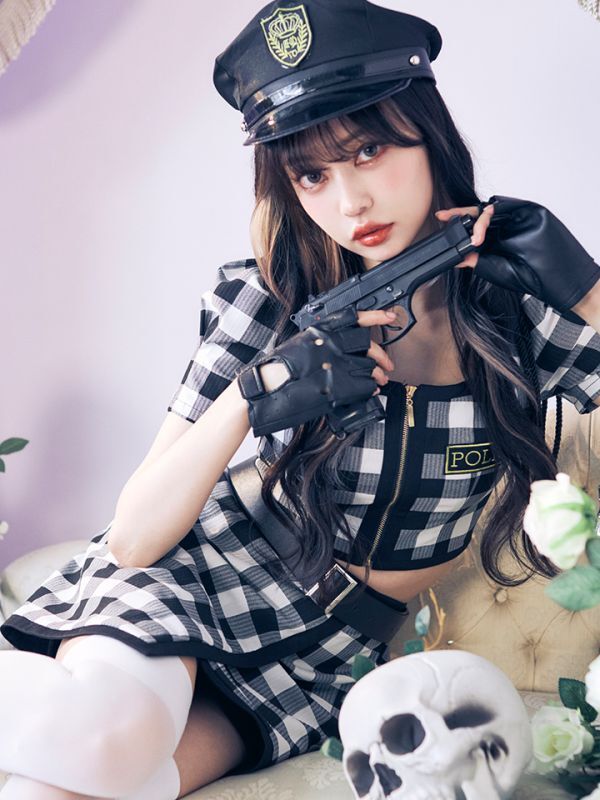 【SALE!!】【即日発送】【ハロウィン】【LARME/ラルム掲載】 ギンガムセットアップポリス 【コスプレ5点セット】【XS-Mサイズ/1カラー】(HC206-SV)[[HC03]-B]
