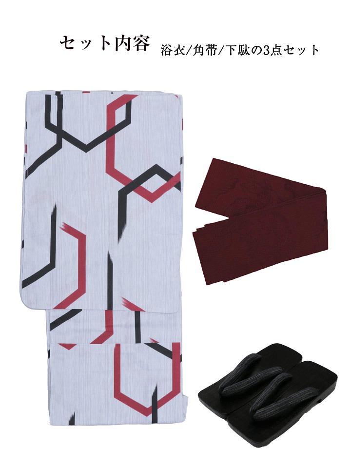 【即日発送】【メンズ浴衣】白地に幾何学模様の紳士浴衣【浴衣・帯・下駄セット】 [YMT] [MSY-6037-ok-W-23MV]