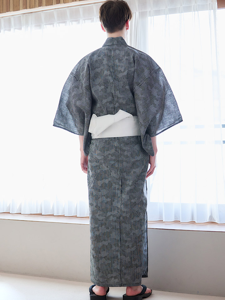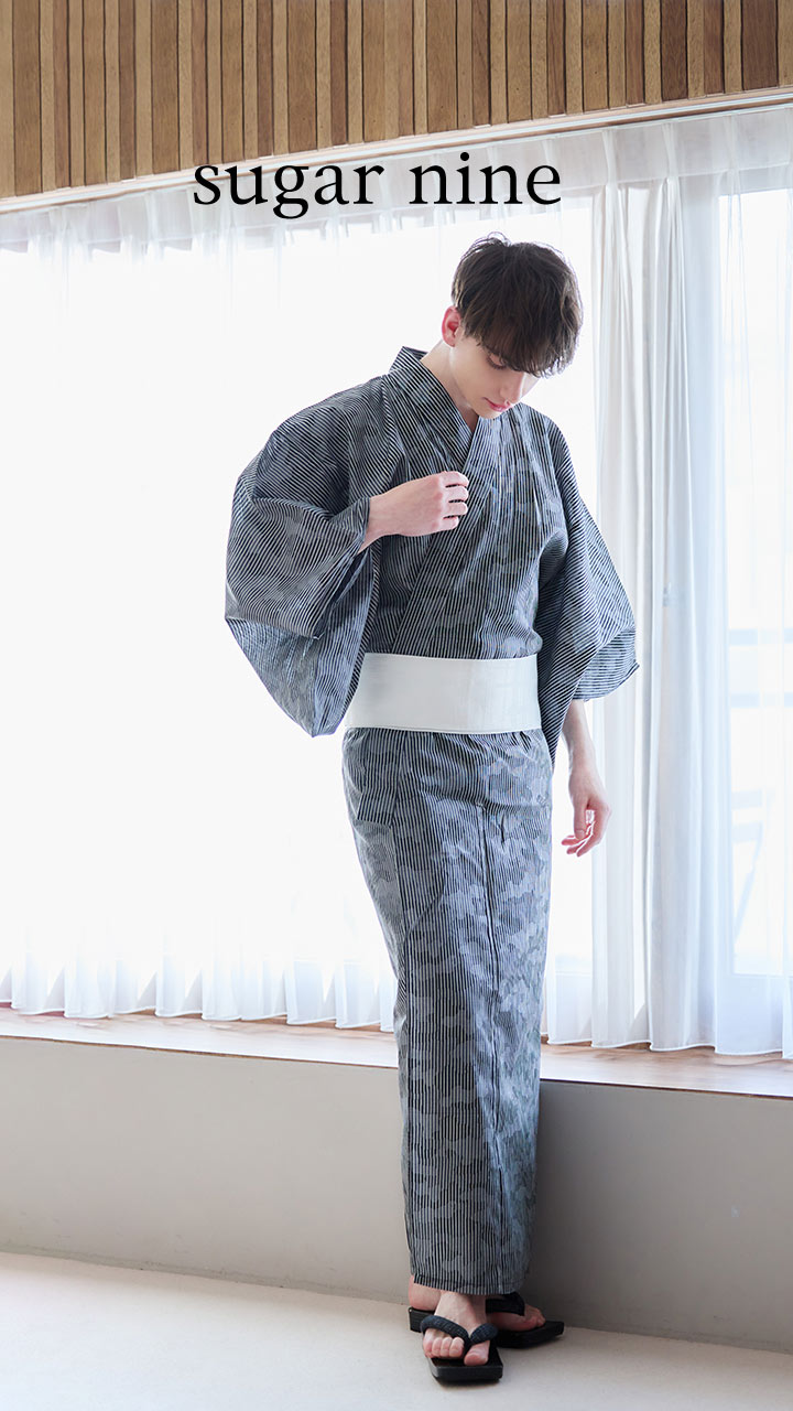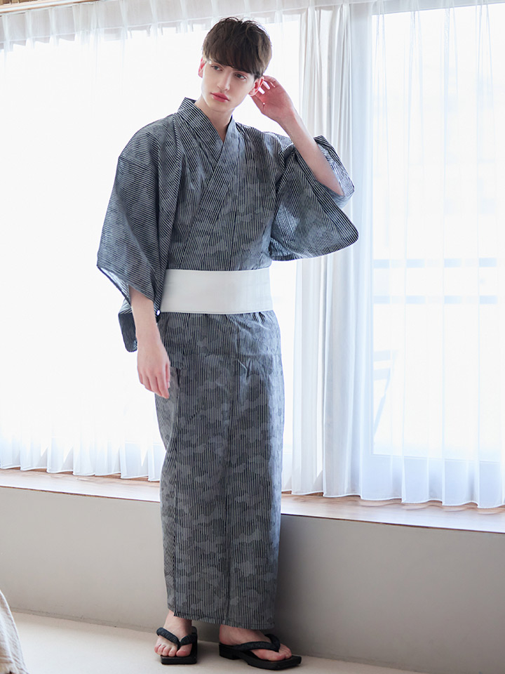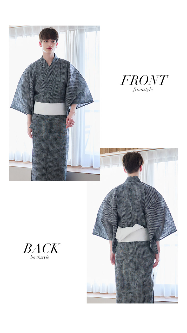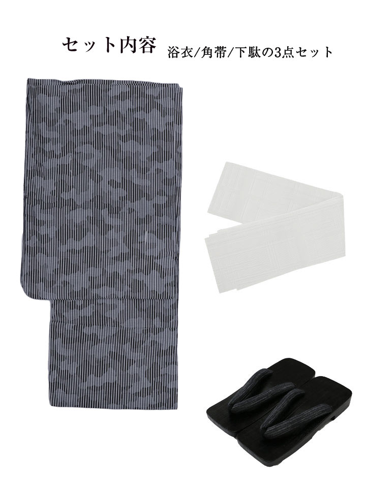 【即日発送】【メンズ浴衣】黒地に迷彩柄ストライプ紳士浴衣【浴衣・帯・下駄セット】 [YMT] [MSY-6039-ok-B-23MV]