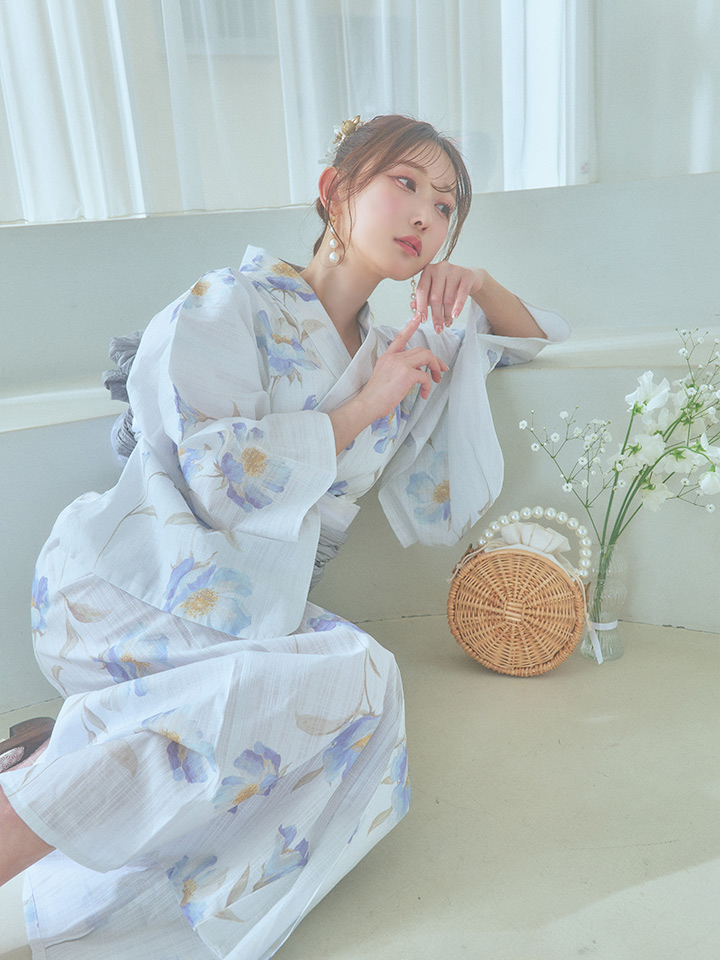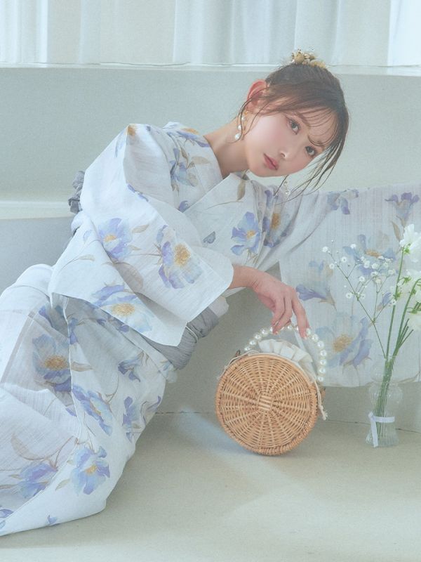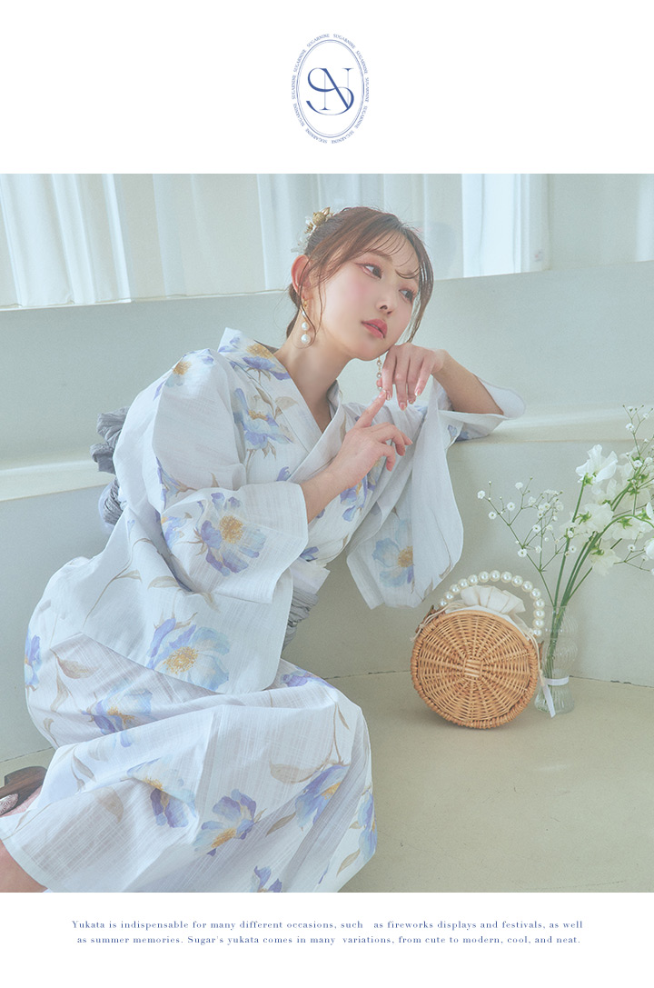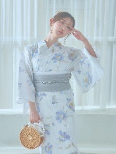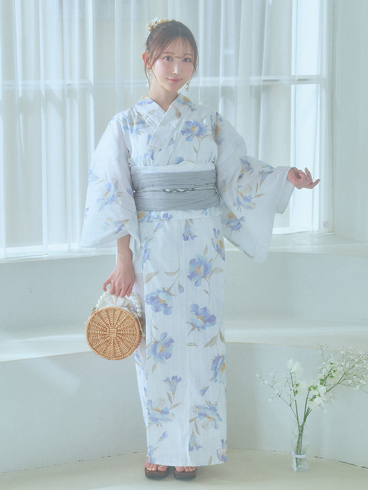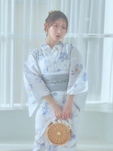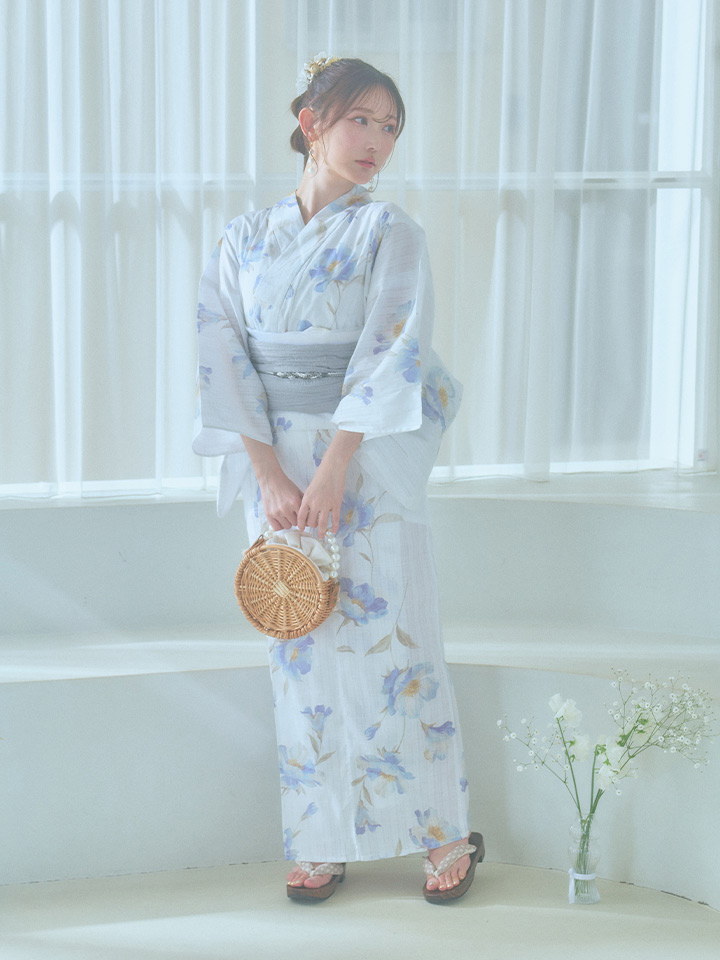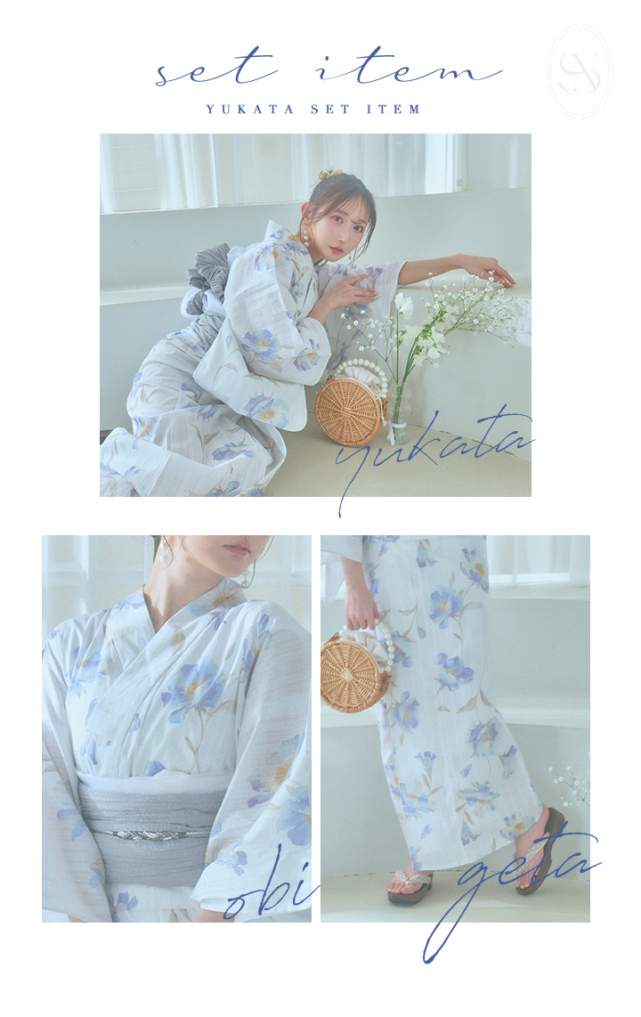 【浴衣セール!】【即日発送!】ホワイト×アイシーフラワー浴衣 【浴衣3点セット 浴衣/帯/下駄】 [YMT] [Y-9014-ok-BL-F-24YI]