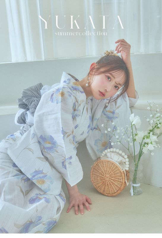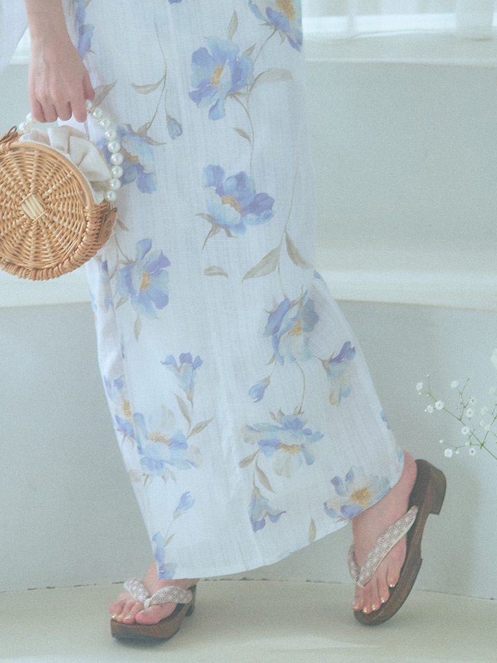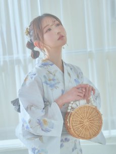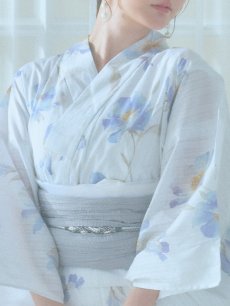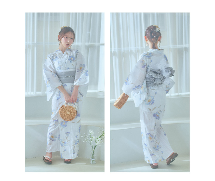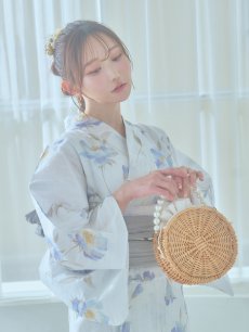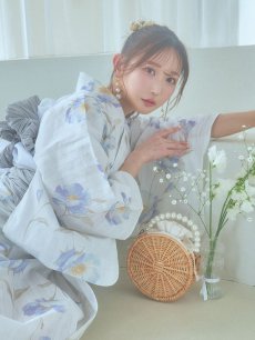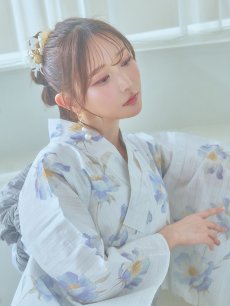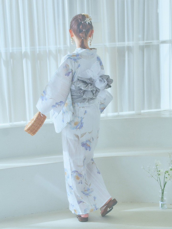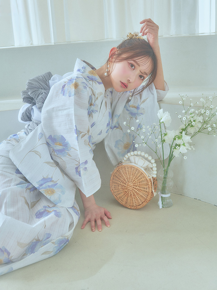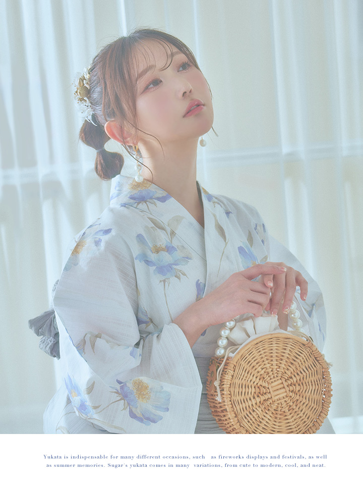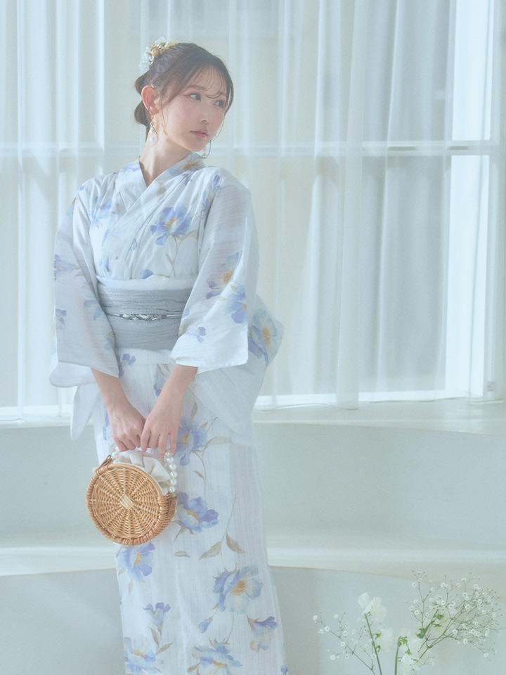 【浴衣セール!】【即日発送!】ホワイト×アイシーフラワー浴衣 【浴衣3点セット 浴衣/帯/下駄】 [YMT] [Y-9014-ok-BL-F-24YI]
