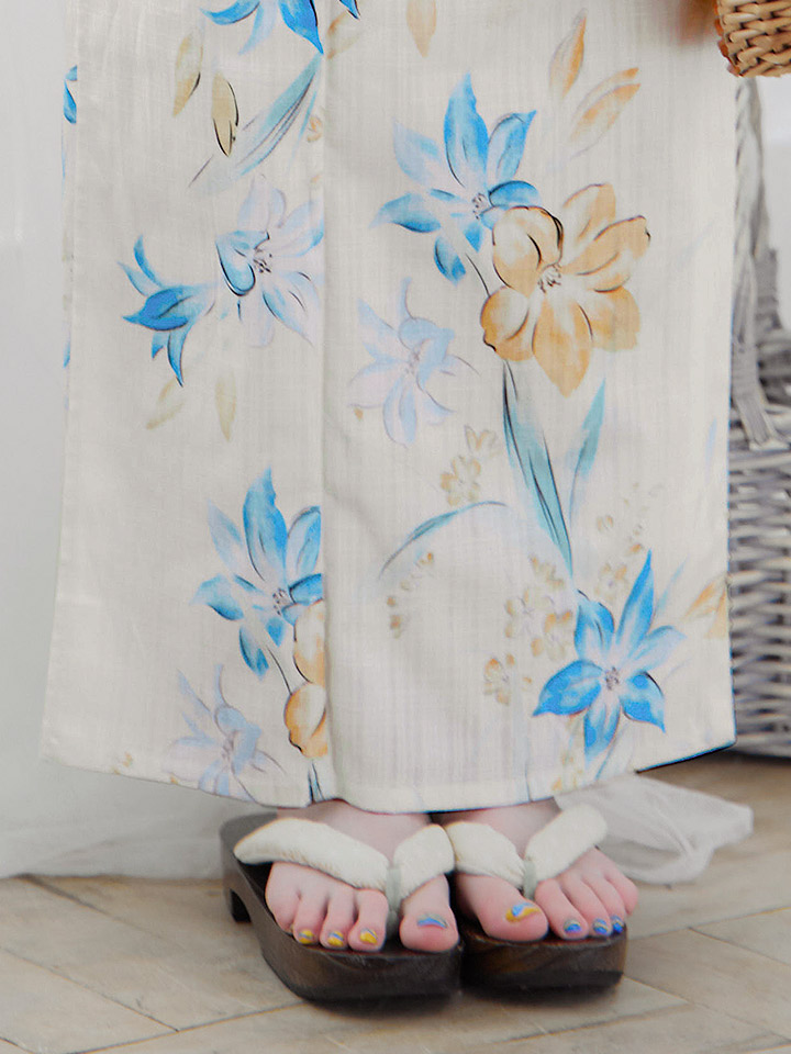 【即日発送】ブルーとイエローのニュアンス水仙浴衣 【浴衣3点セット 浴衣/帯/下駄】 [FB02]