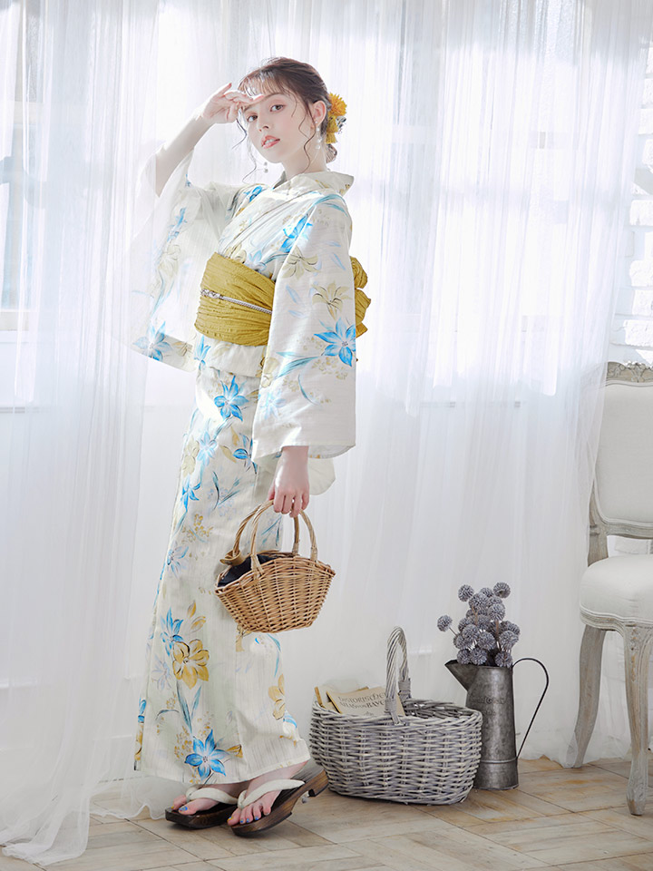 【即日発送】ブルーとイエローのニュアンス水仙浴衣 【浴衣3点セット 浴衣/帯/下駄】 [FB02] [Y-7083-ok-W-F-23NN]