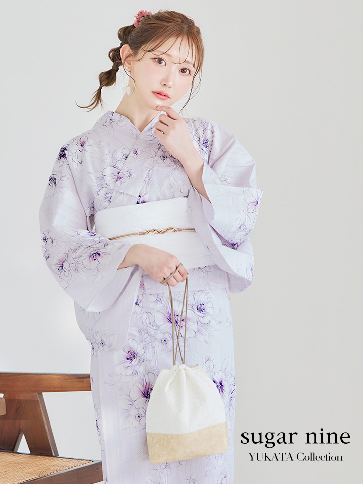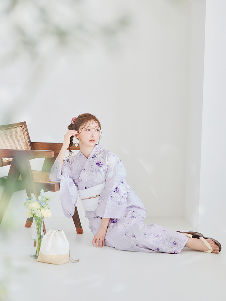 【浴衣セール!】【即日発送】可憐なパープルxホワイト牡丹浴衣 【浴衣3点セット 浴衣/帯/下駄】 [FB02] [Y-7079-ok-PL-F-23YI]