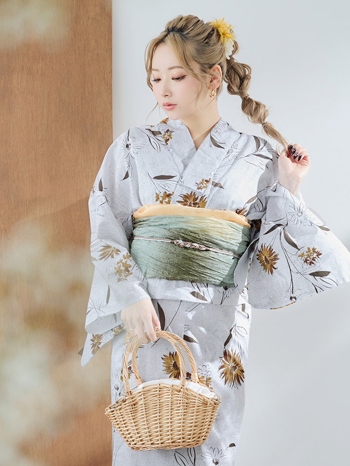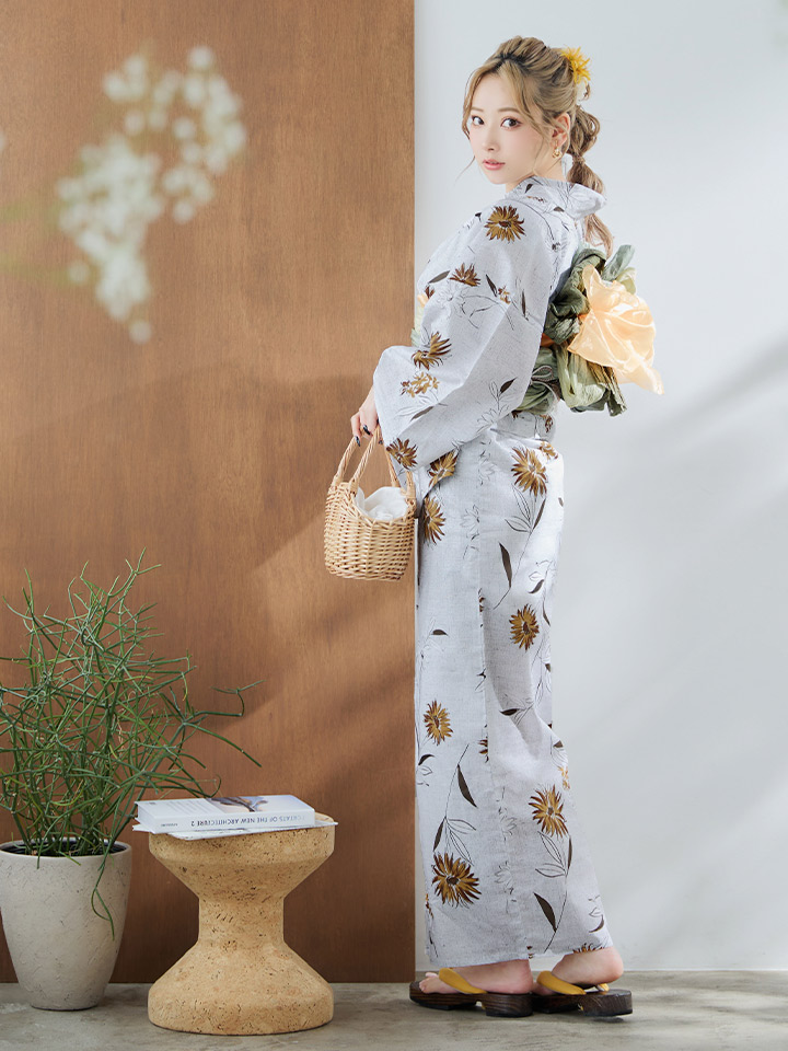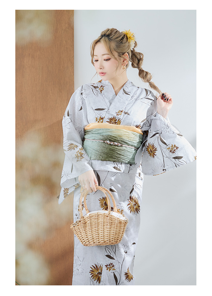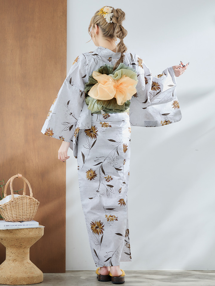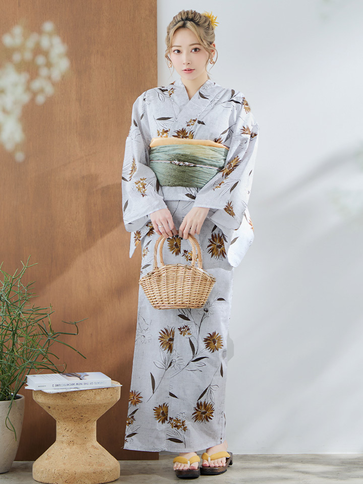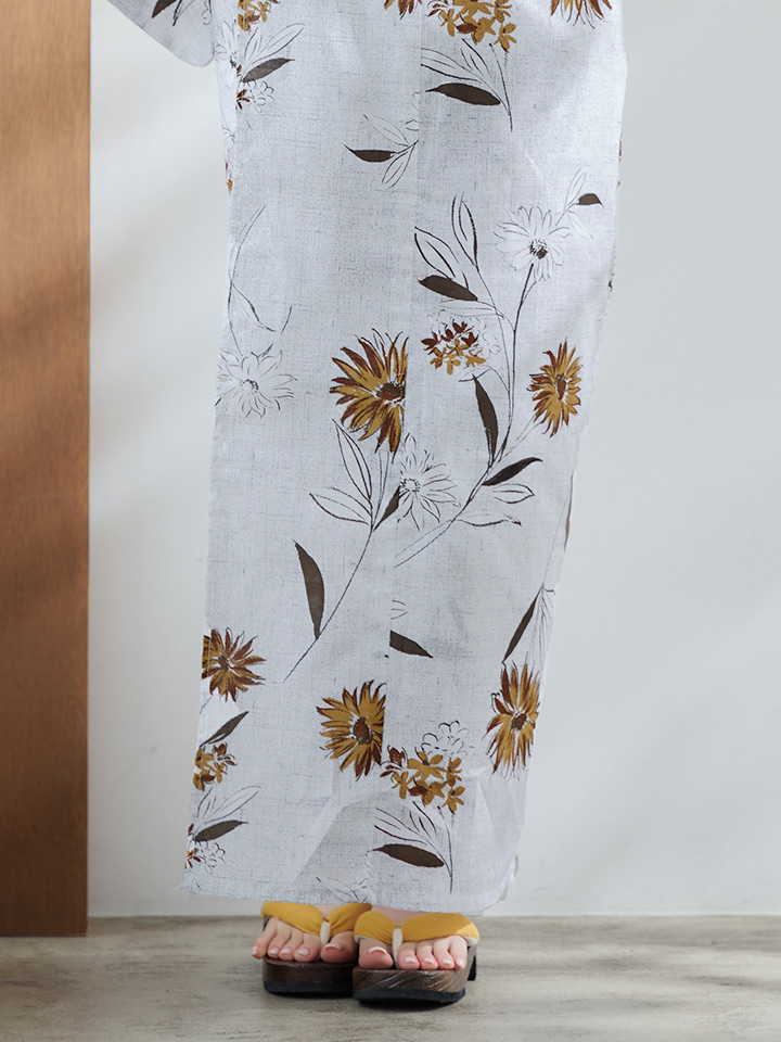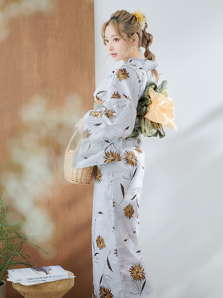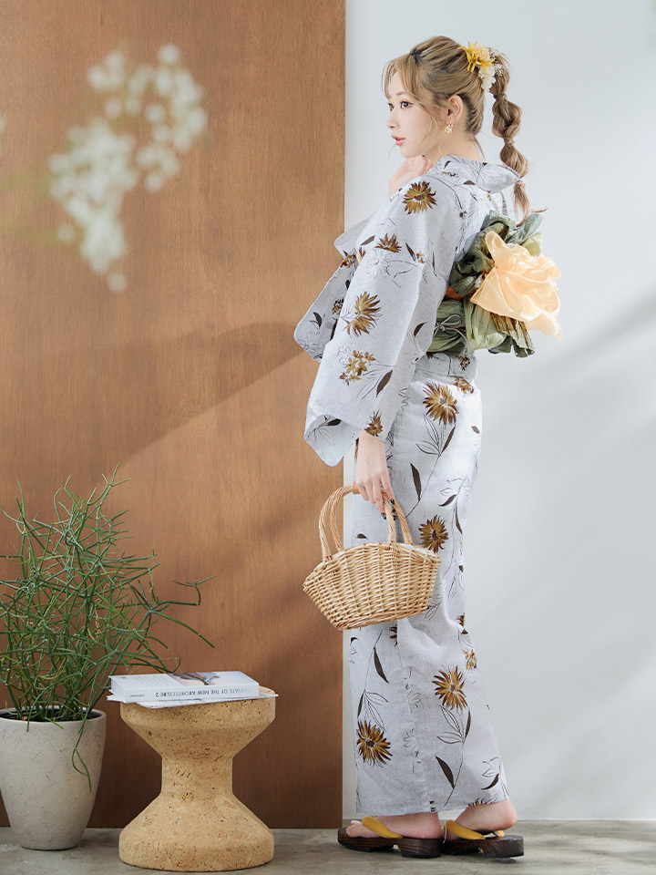 【即日発送】グレー地×マーガレット浴衣 【浴衣3点セット 浴衣/帯/下駄】 [YMT]