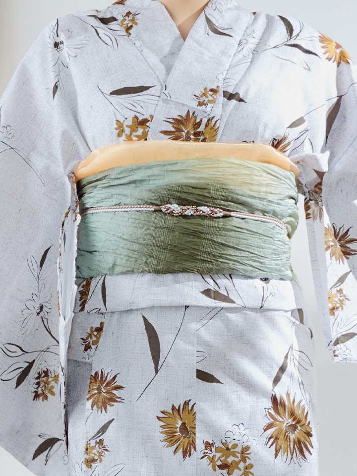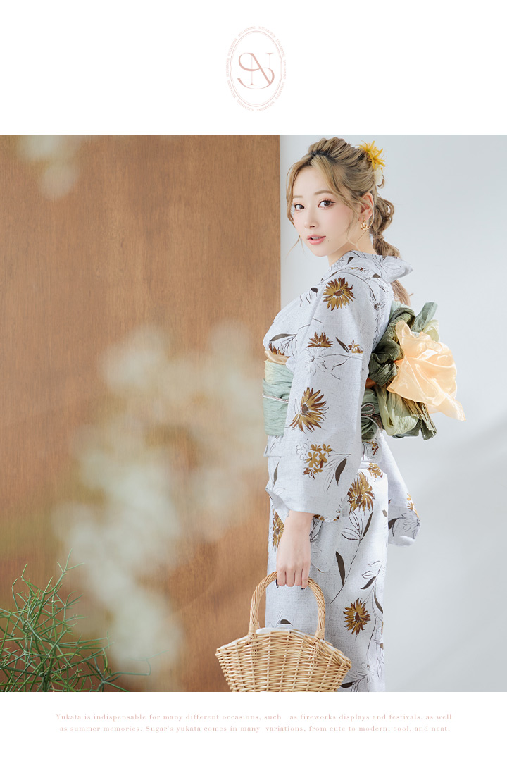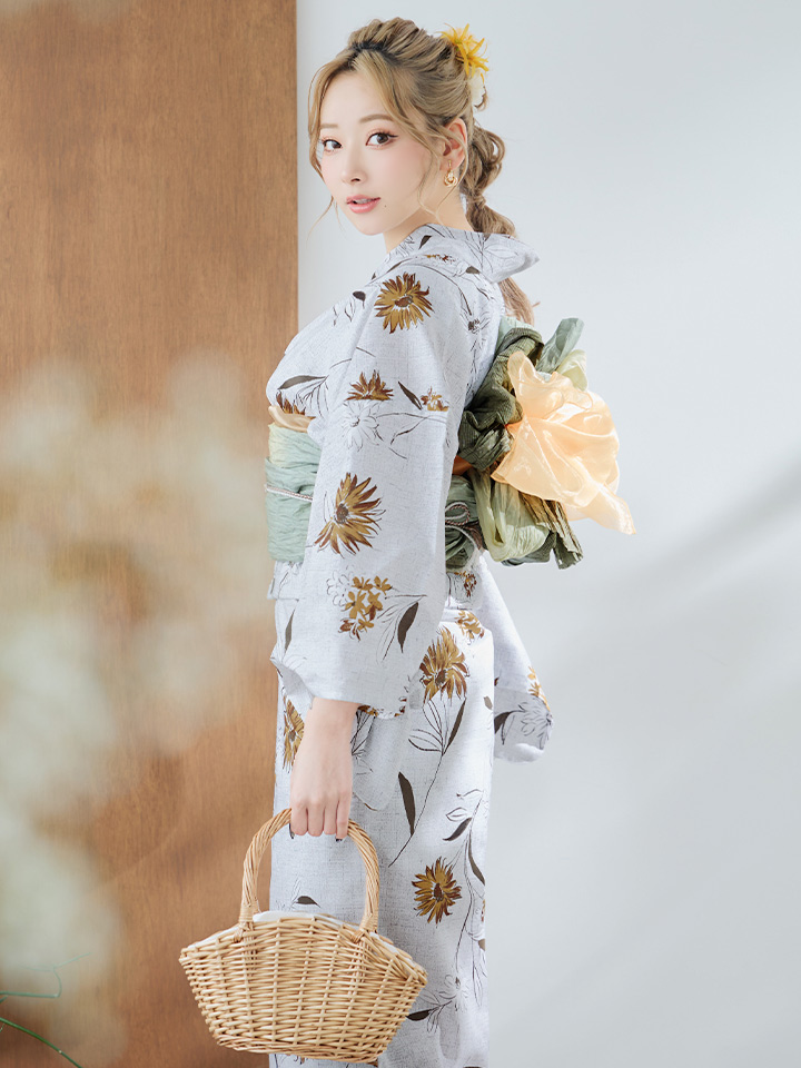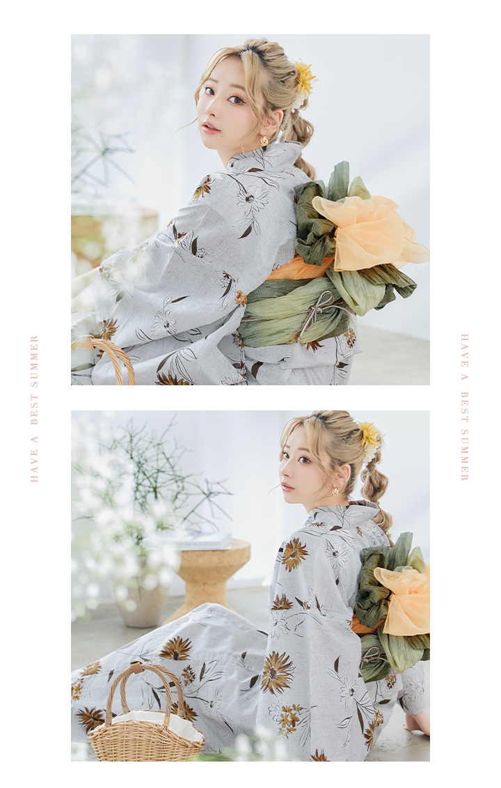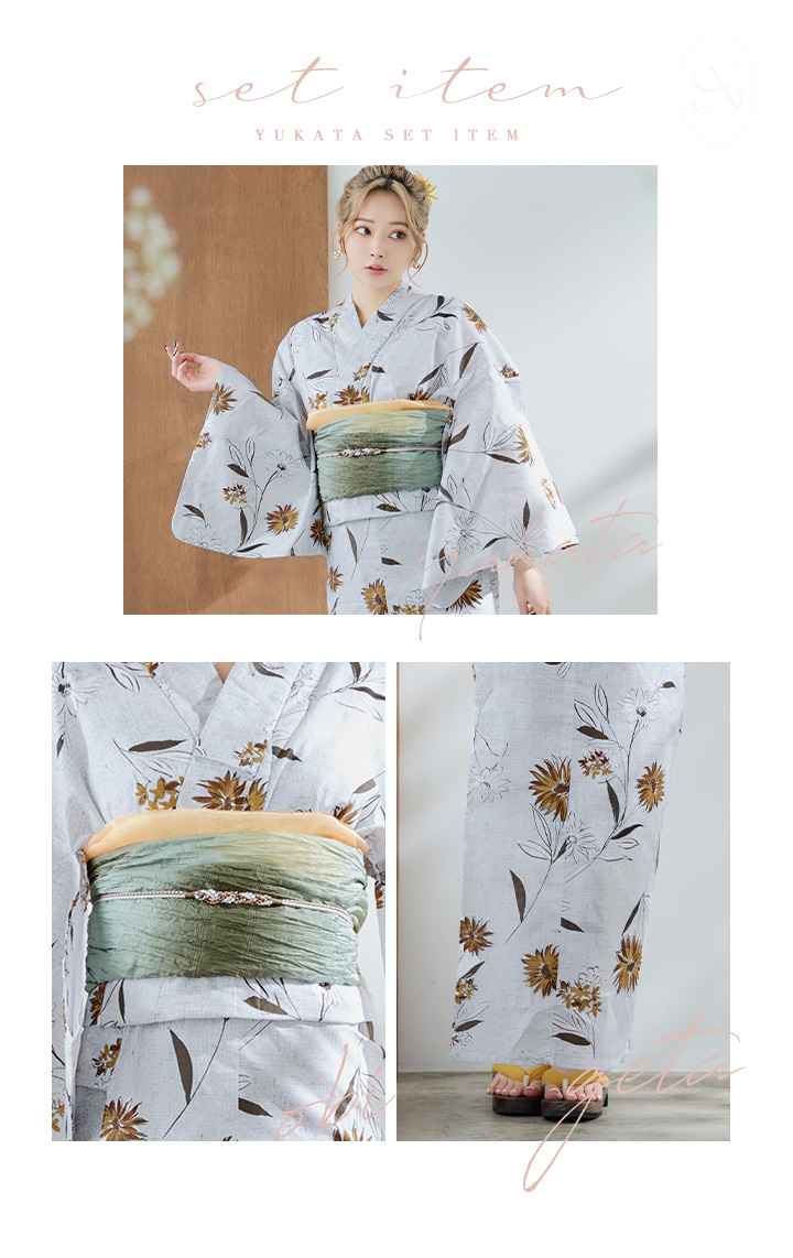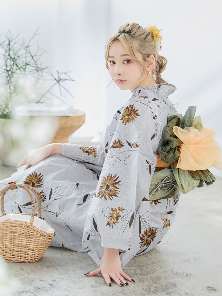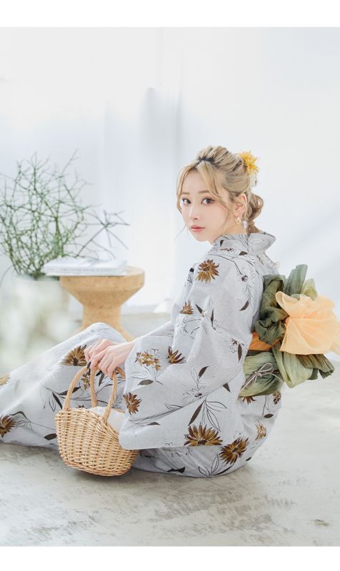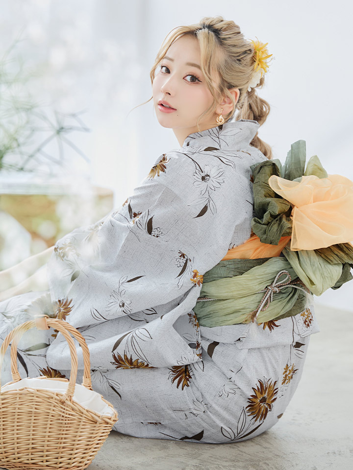 【即日発送】グレー地×マーガレット浴衣 【浴衣3点セット 浴衣/帯/下駄】 [YMT]
