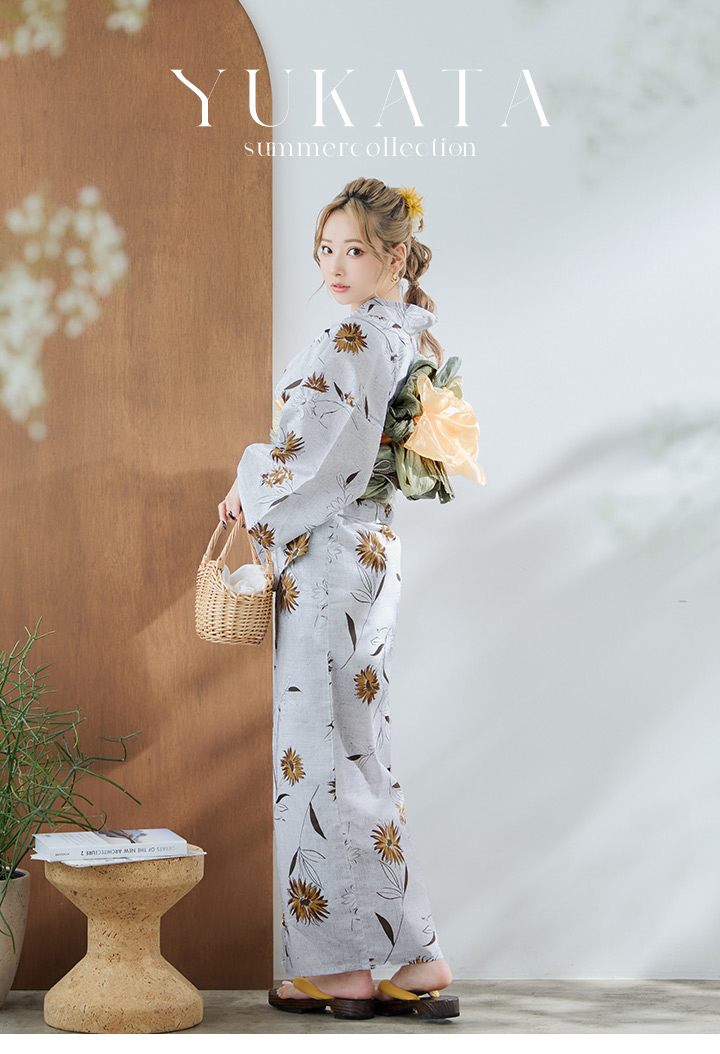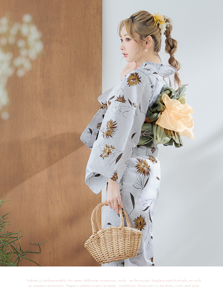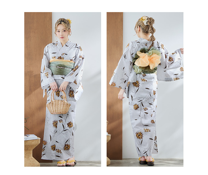 【即日発送】グレー地×マーガレット浴衣 【浴衣3点セット 浴衣/帯/下駄】 [YMT] [Y-8003-kj-GY-F-24PY]
