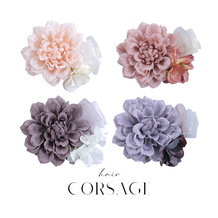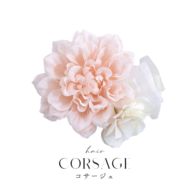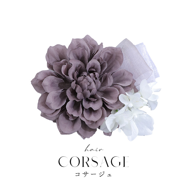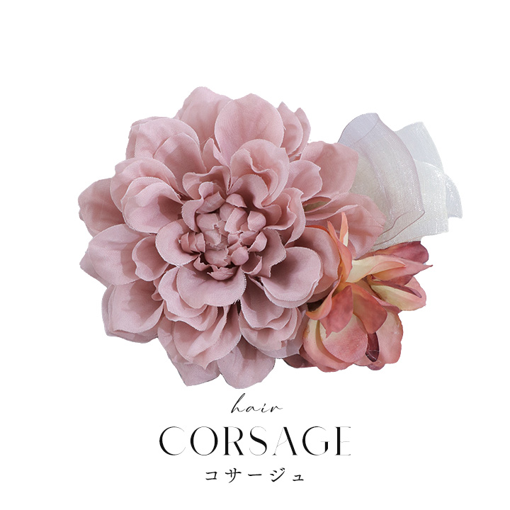 コーディネイトに彩りを与える2連フラワーコサージュ