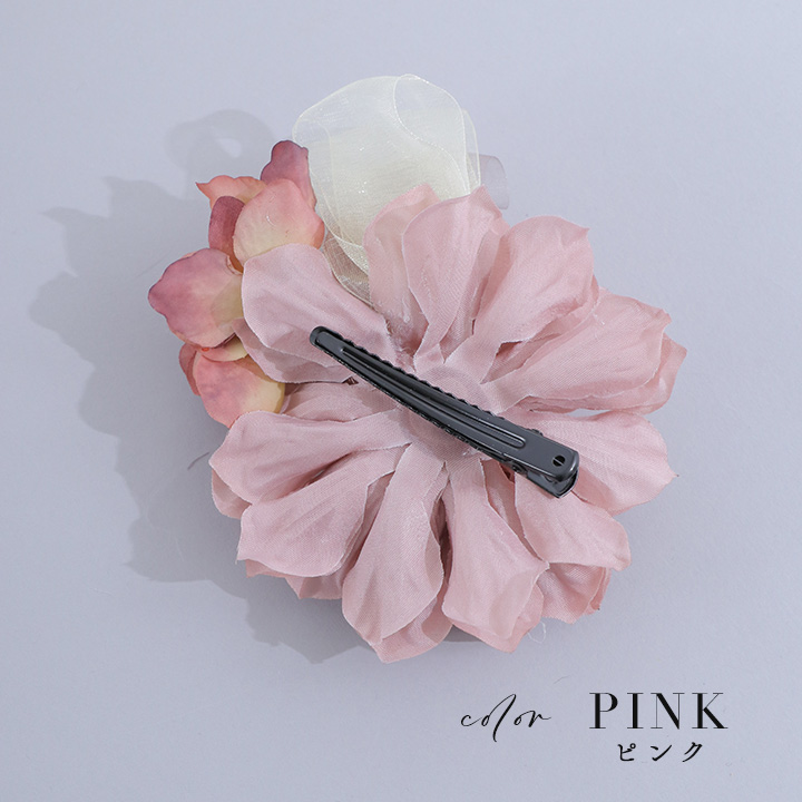 【浴衣小物】オーガンジーリボン付き小花コサージュ【4カラー】[YMT] [YA-74-kn]