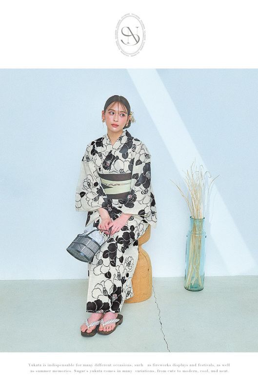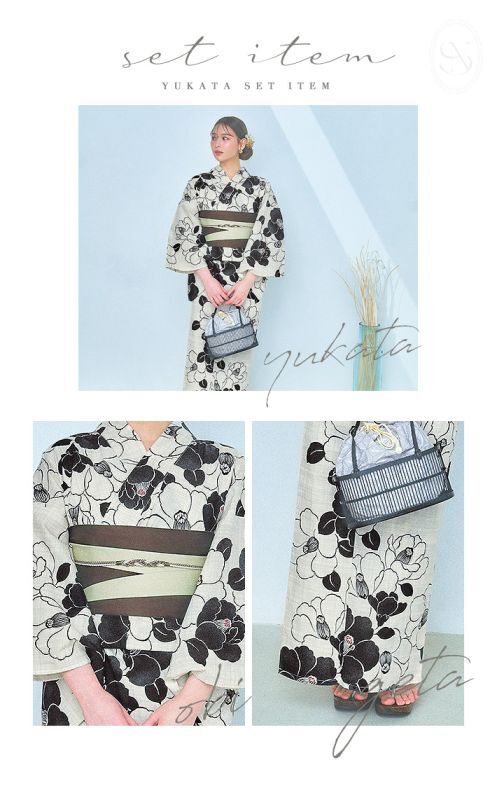 【即日発送】モノトーン大正モダン浴衣 【浴衣3点セット 浴衣/帯/下駄】 [YMT] [Y-9028-ok-W-F-24IE]