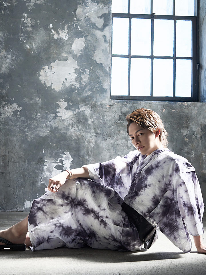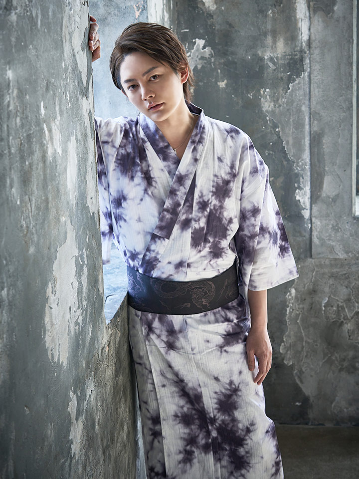 涼しげな白地に現代風のタイダイ柄がスタイリッシュな浴衣セット。