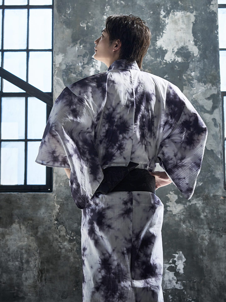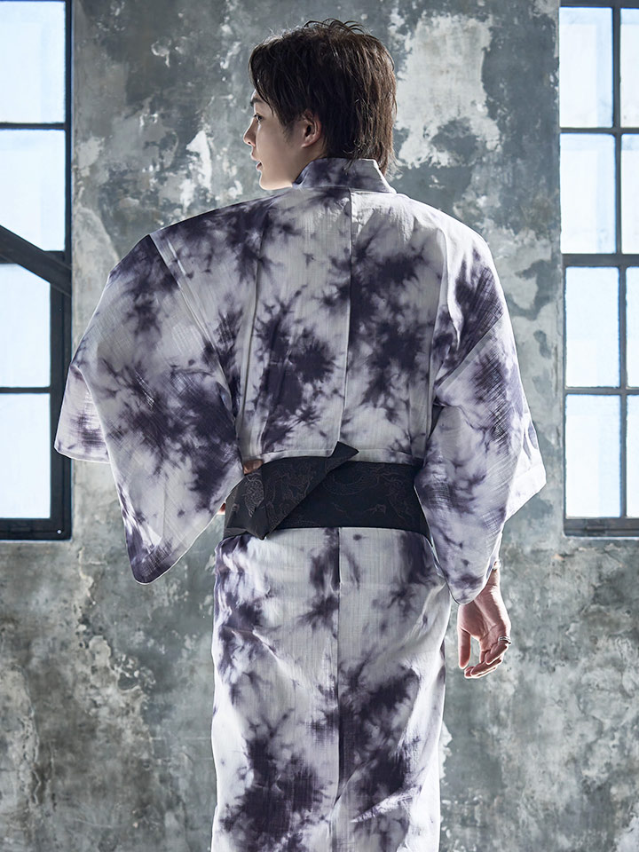 男性用浴衣/タイダイ柄/絞り染め/白地/メンズ浴衣