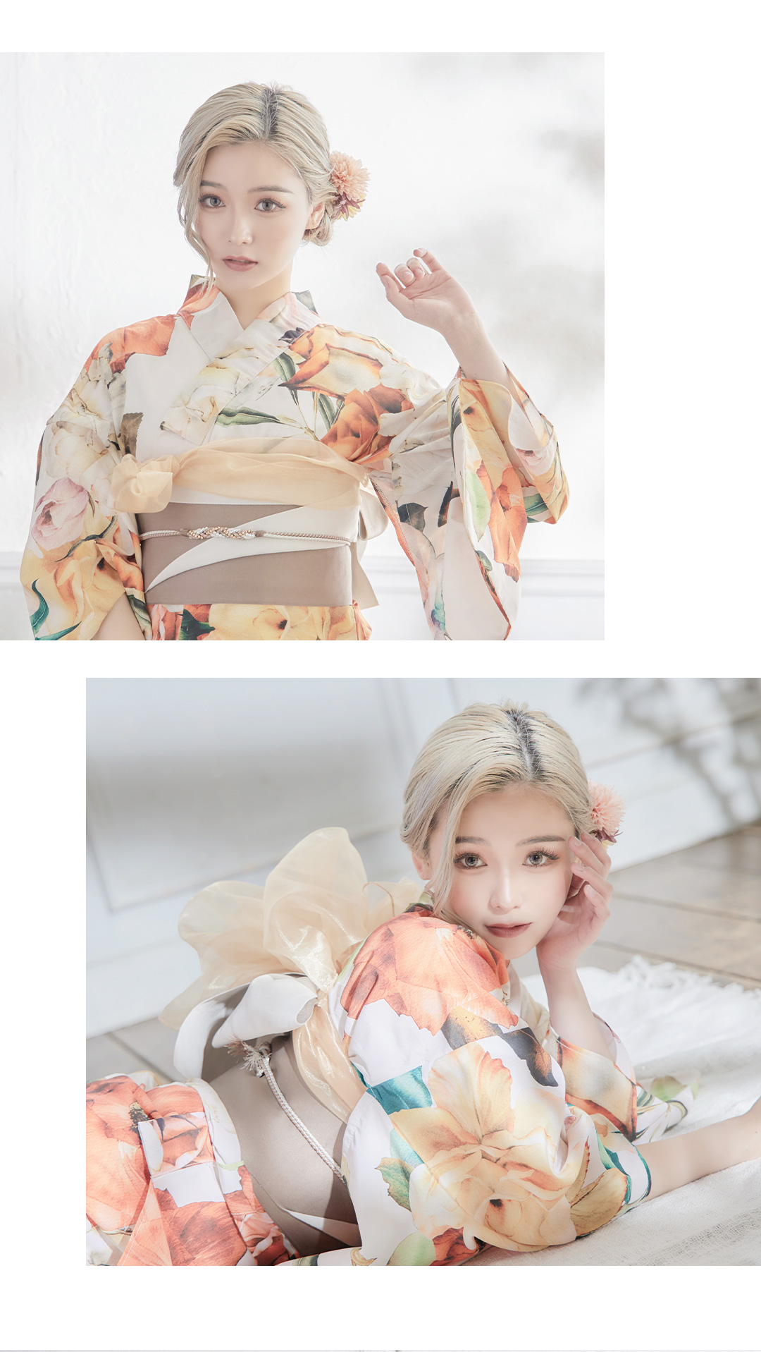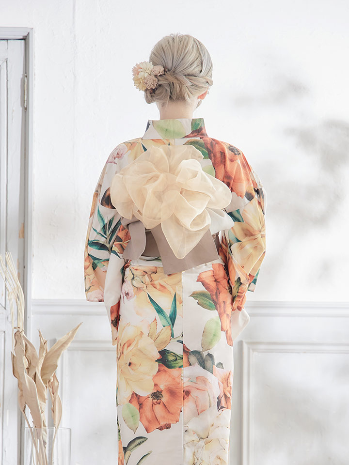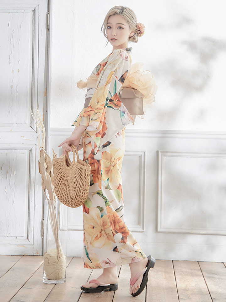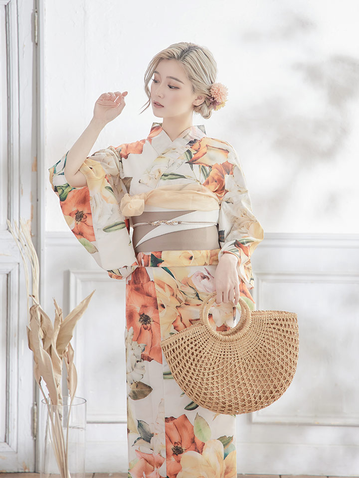 【即日発送】【オリジナル浴衣】アンティークオレンジフラワー浴衣 【浴衣3点セット 浴衣/帯/下駄】 [YMT] [Y-4003-sb-OR-F-22SE]
