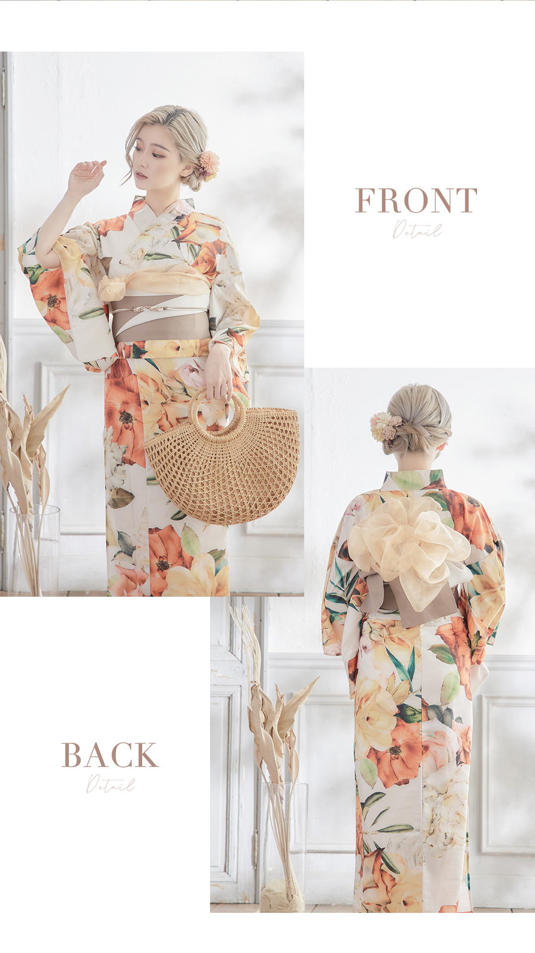 【即日発送】【オリジナル浴衣】アンティークオレンジフラワー浴衣 【浴衣3点セット 浴衣/帯/下駄】 [YMT]