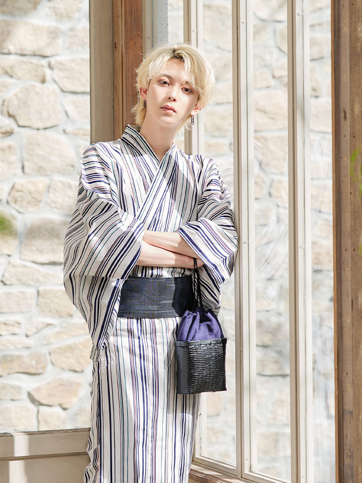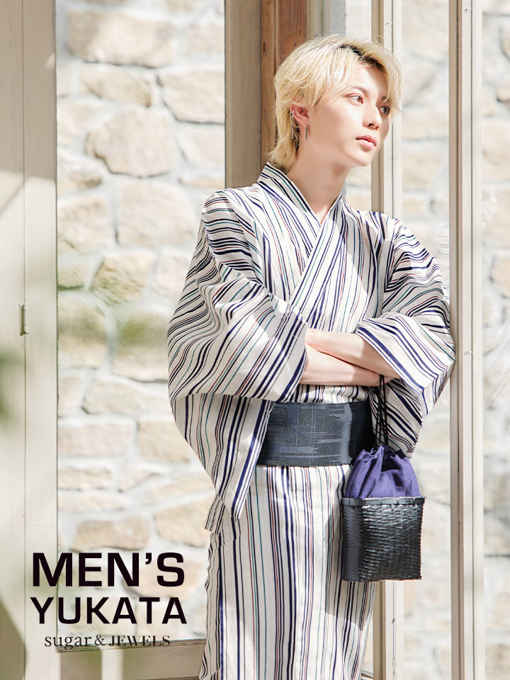【即日発送】【メンズ浴衣】白地×スタイリッシュストライプ浴衣【浴衣・帯・下駄セット】[YMT] [MSY-6031-ok-W-23MK]