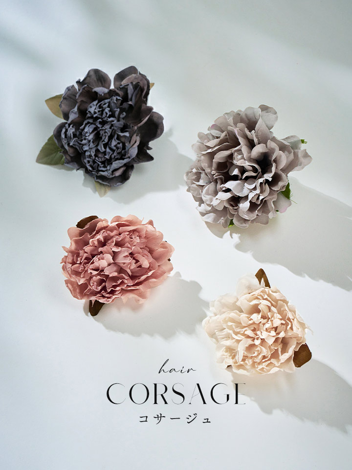 大きめで華やかさを出してくれるコサージュ。