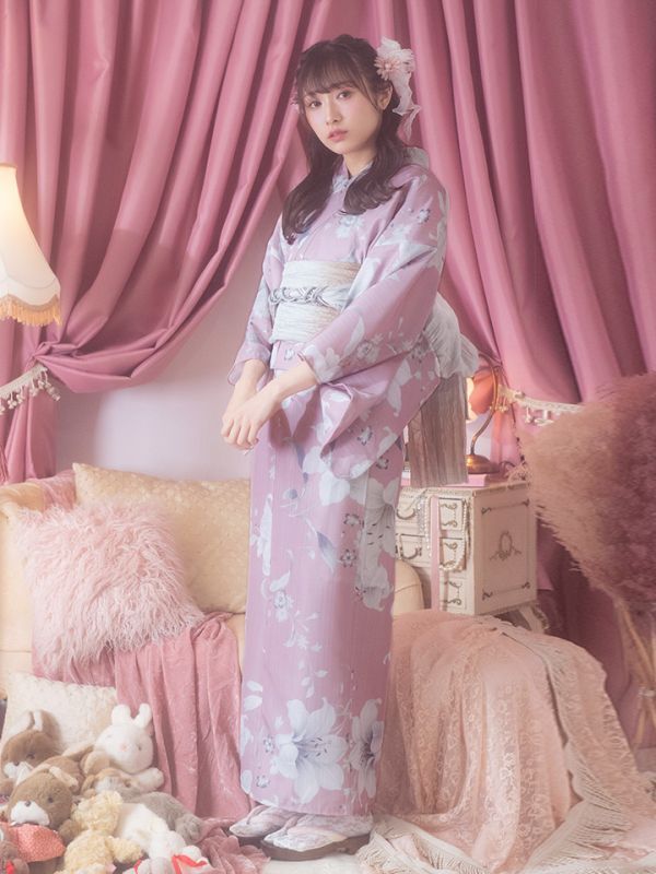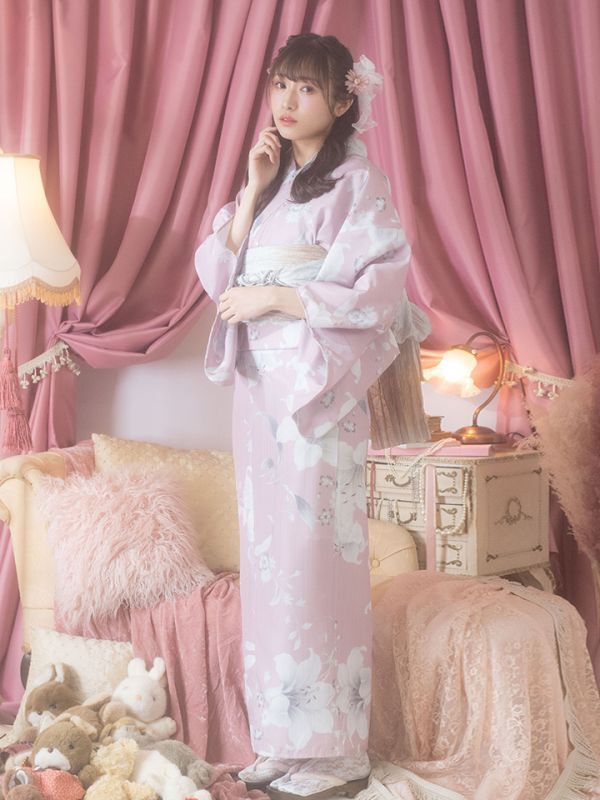 【浴衣セール!】【即日発送】【浴衣】大人スウィート/ピンク地に百合の大人浴衣 【浴衣3点セット 浴衣/帯/下駄】 [YMT]