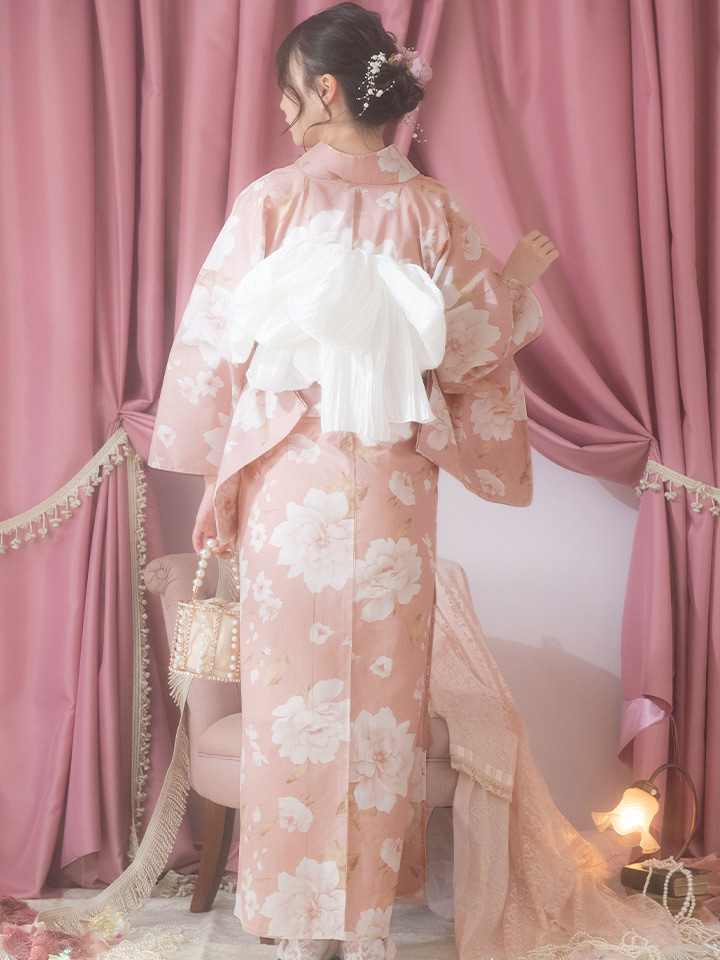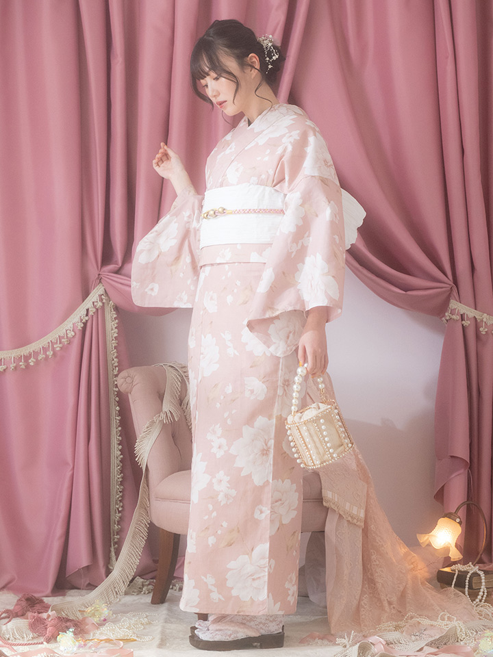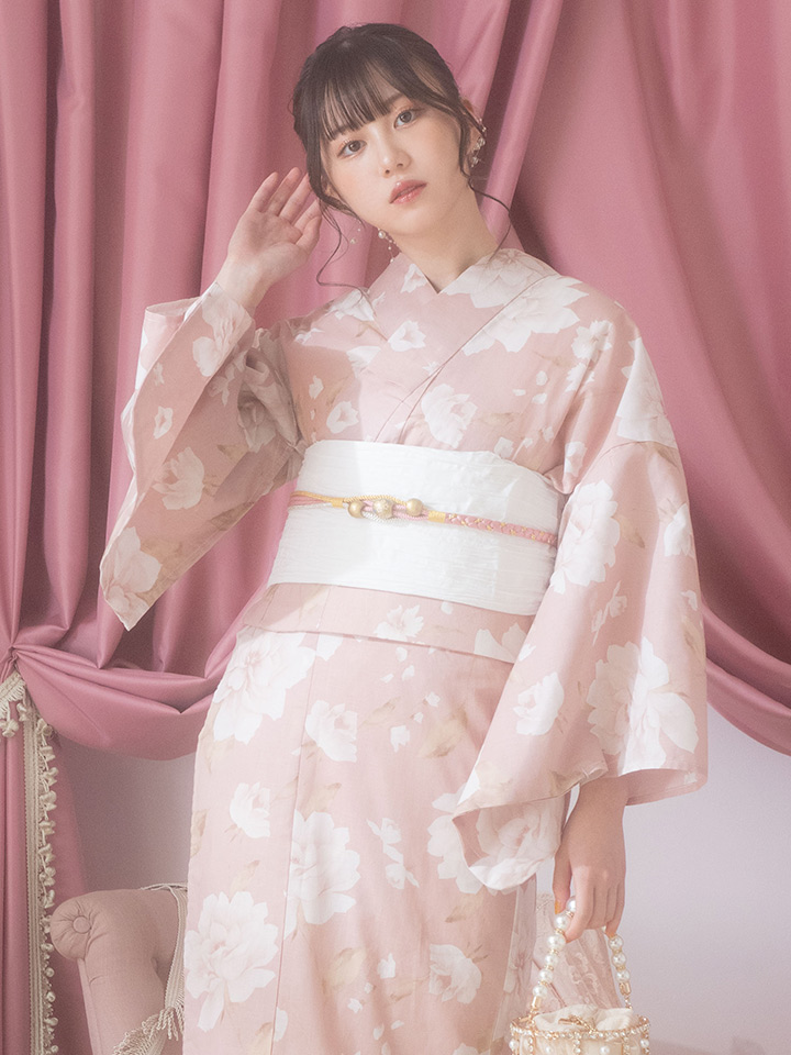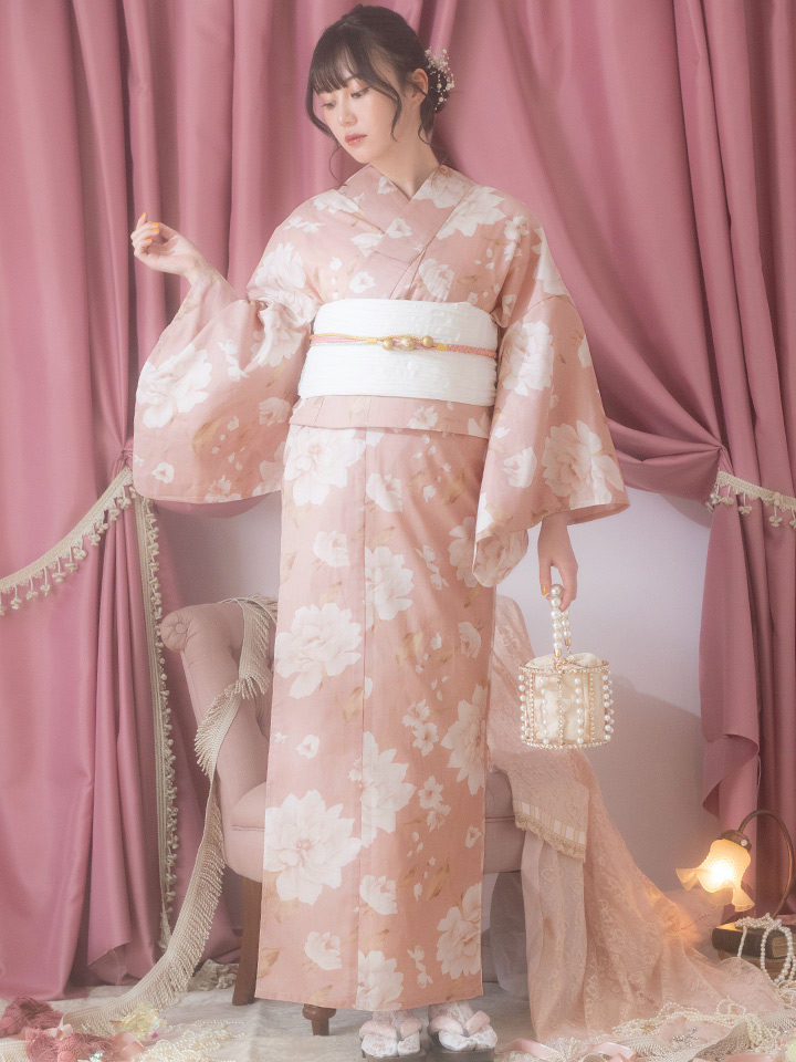 【即日発送】【浴衣】くすみピンク地のホワイト牡丹浴衣 【浴衣3点セット 浴衣/帯/下駄】 [YMT] [Y-7032-kj-P-F-23lar]