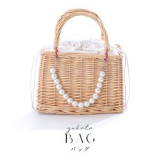 パール付きラタン編み台形カゴバッグ[HC02] [YB-2401-kj-BE-s9]