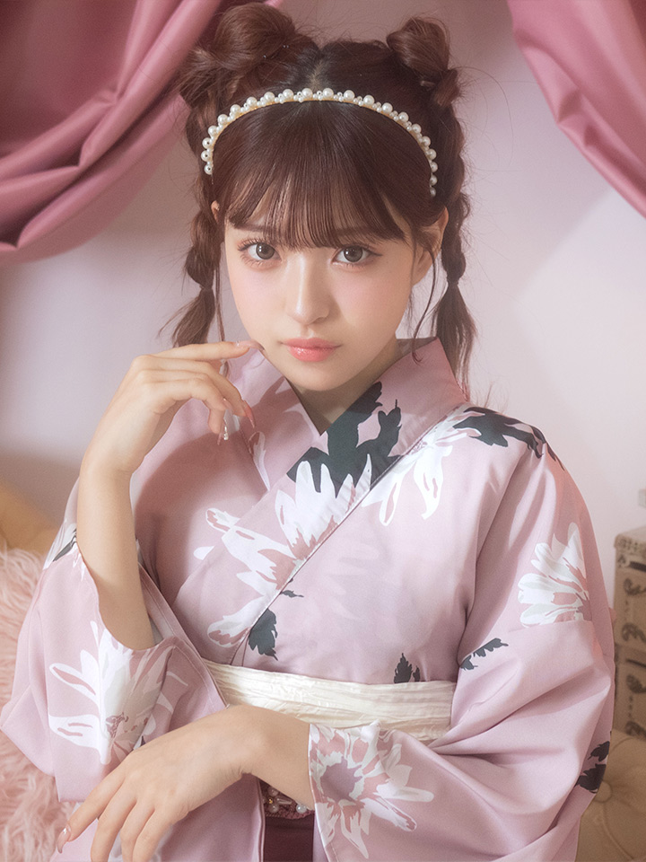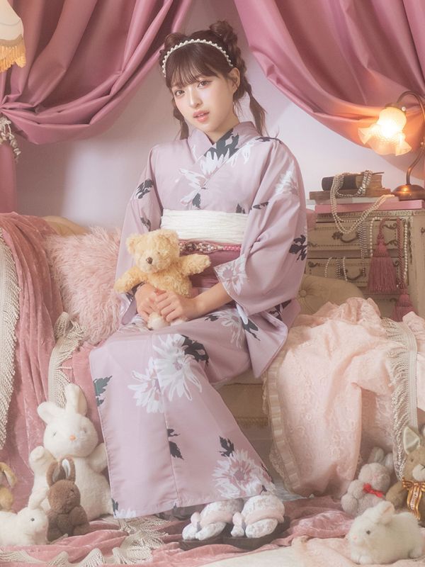 【即日発送】【浴衣セール!】【浴衣】 くすみピンク地xニュアンスフラワー 牡丹柄 浴衣 【浴衣3点セット 浴衣/帯/下駄】 [YMT] [Y-7006-sb-P-F-23lar]