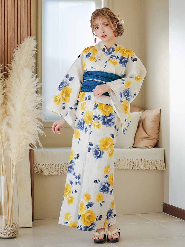【即日発送】ブルーxイエローローズ 薔薇 バラ 浴衣 【浴衣3点セット 浴衣/帯/下駄】 [FB02] [Y-7057-ok-W-F-23PY]