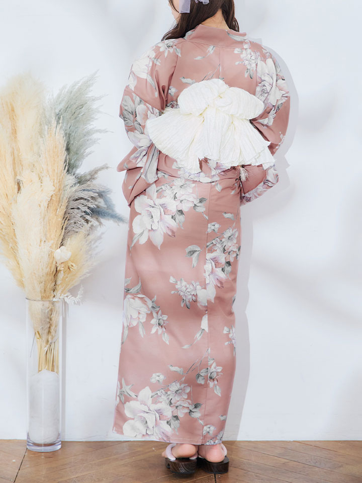 【即日発送】【浴衣】 大人スウィート/くすみピンク椿浴衣 【浴衣3点セット 浴衣/帯/下駄】 [YMT] [Y-7028-sb-P-F-23FU]