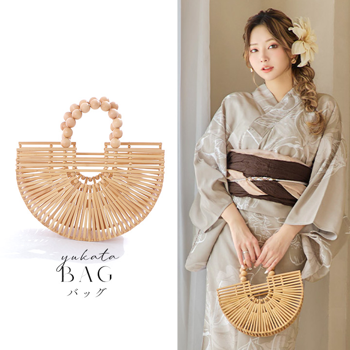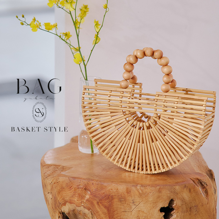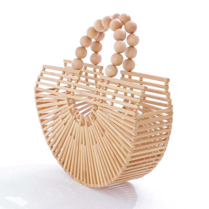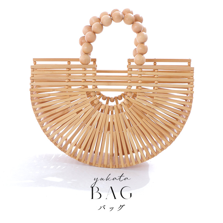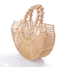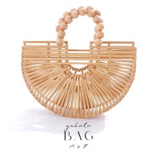 木製ハンドル付き竹編み半円カゴバッグ[HC02] [YB-2405-kj-BE-s9]