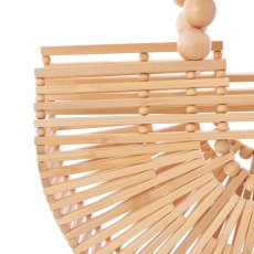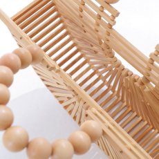 木製のハンドルがアクセサリーライクな竹編みバッグ。