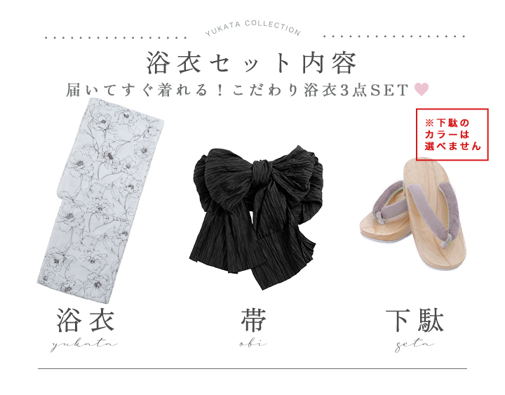 【即日発送】ホワイト×線画フラワー浴衣 【浴衣3点セット 浴衣/帯/下駄】 [YMT]