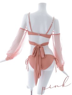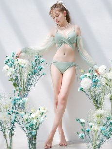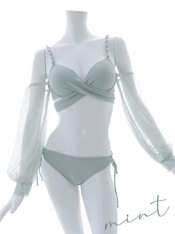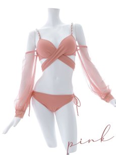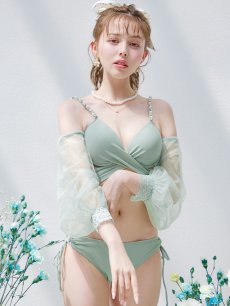 チュール袖と肩紐のビジューが大人可愛いビキニが登場。