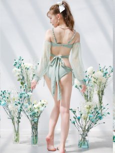【即日発送】【ビキニ】【水着】ふんわりシアー長袖ビキニ 2点セット[YMT] [M240dzj-24NN-MI-2]